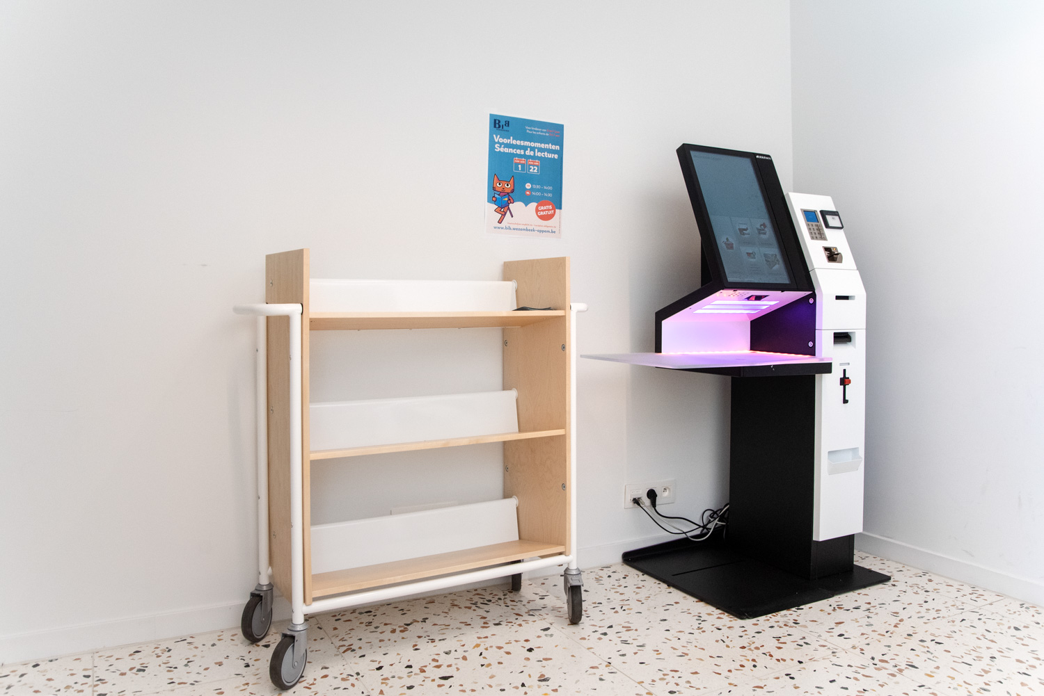 Denne bogvogn kan bruges som et mini reolsystem, der kan køres rundt i biblioteket efter behov.
