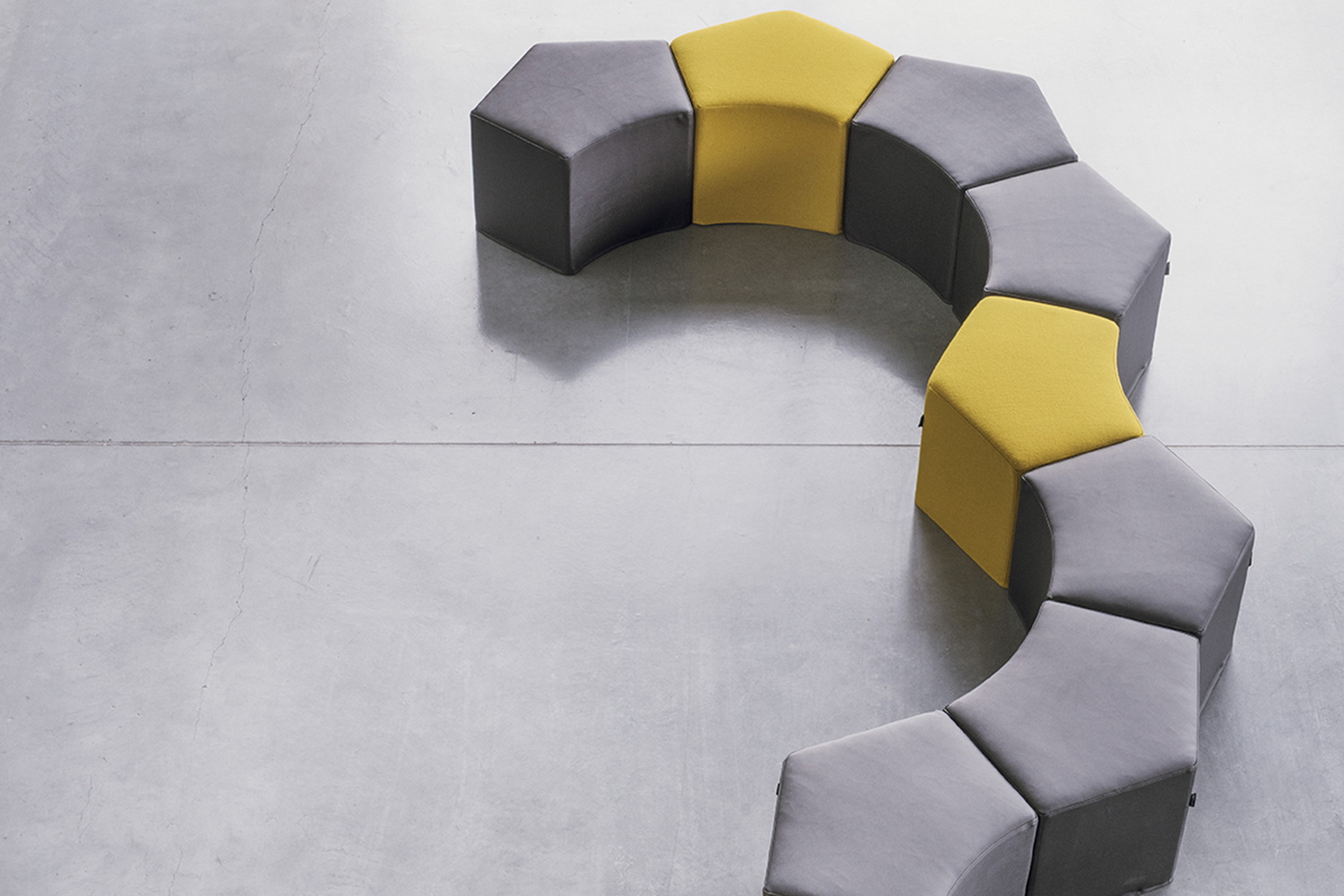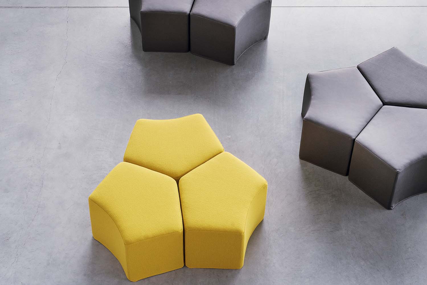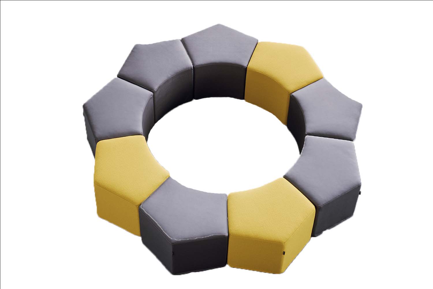 Anret i grupper så pufferne danner sjove figurer, eller brug Pause som enkeltstående supplement til øvrigt biblioteksinventar.