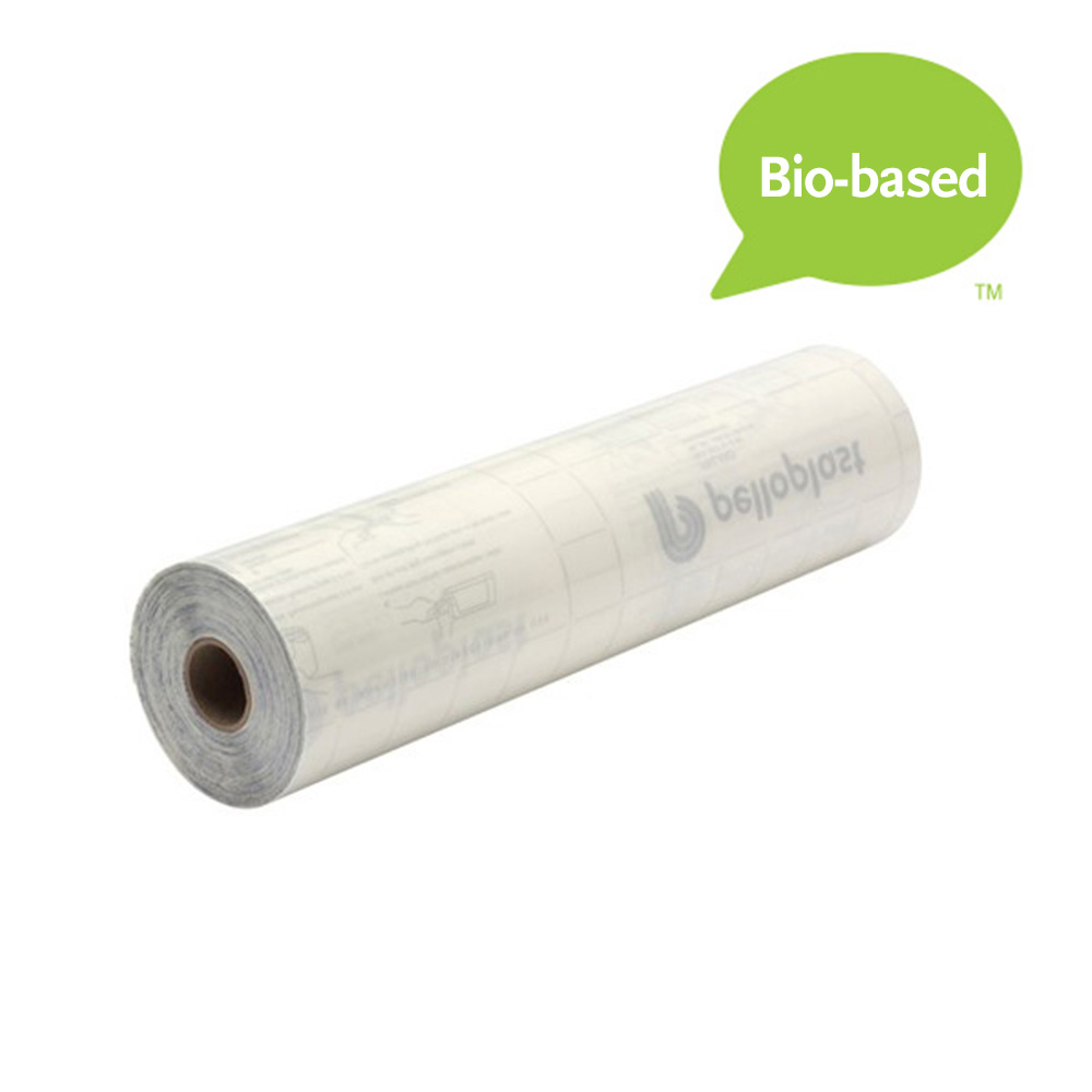 Den selvklæbende, blanke plastfilm er fremstillet af biobaseret plast (75% sukkerrør) og vandbaseret akrylklæbemiddel.