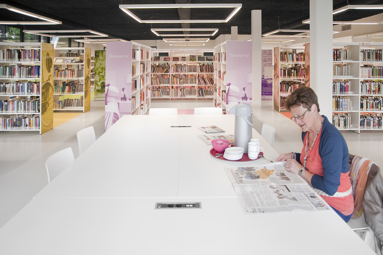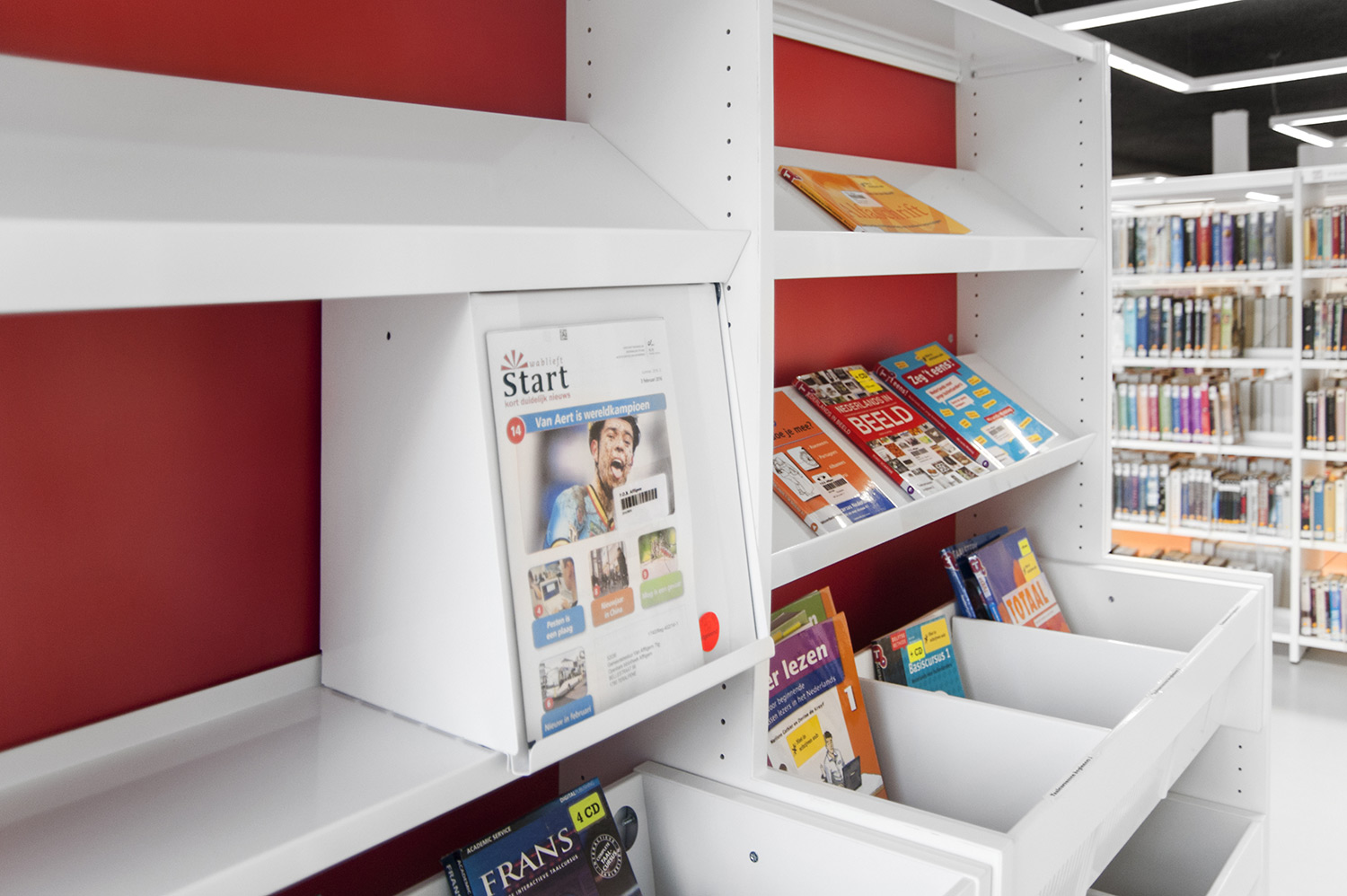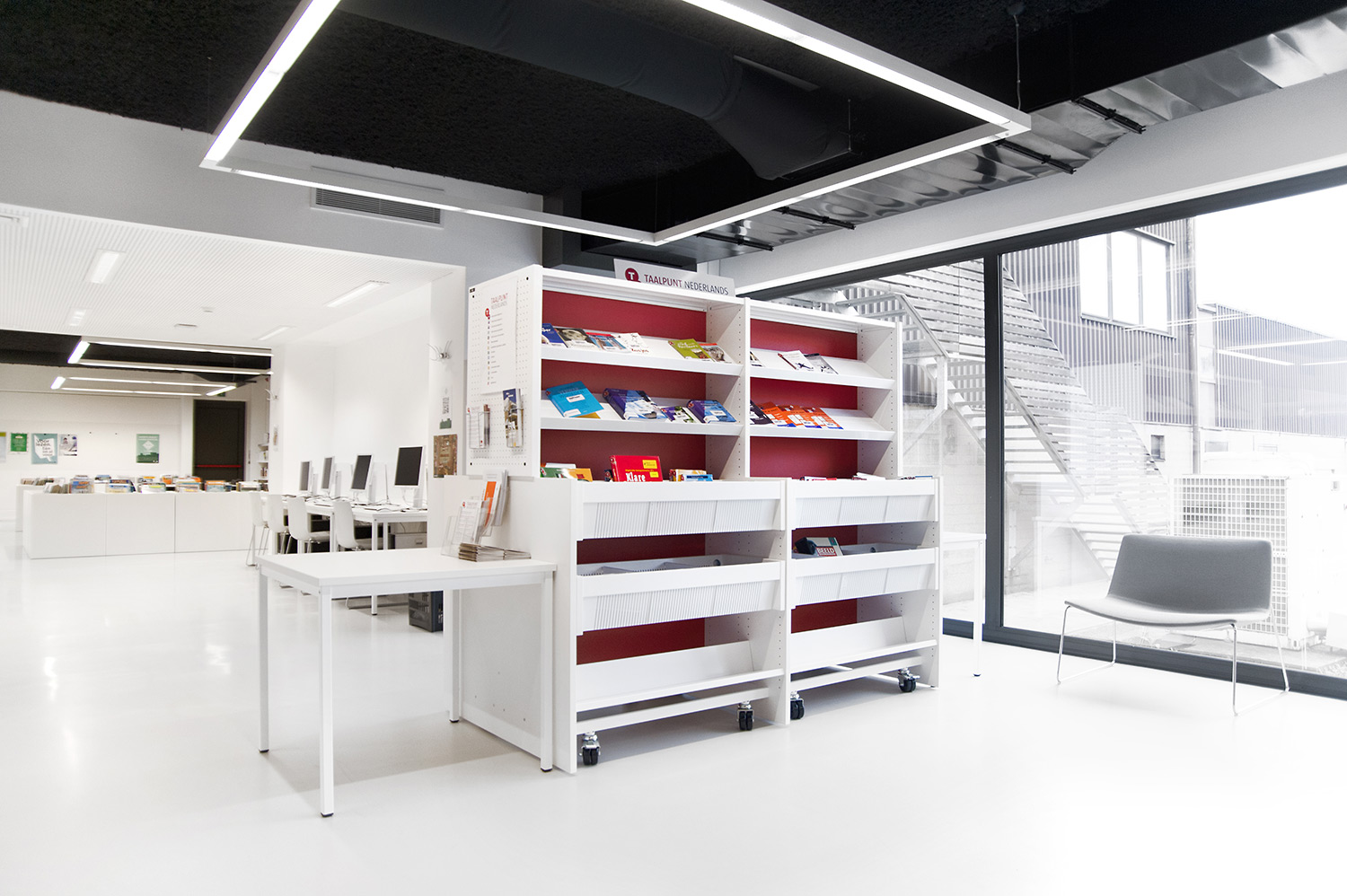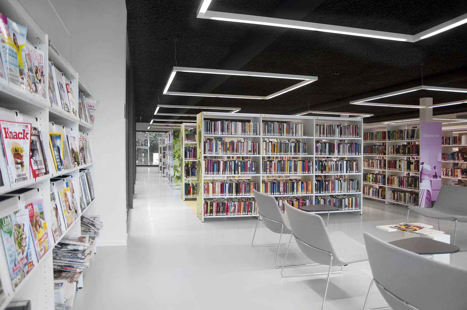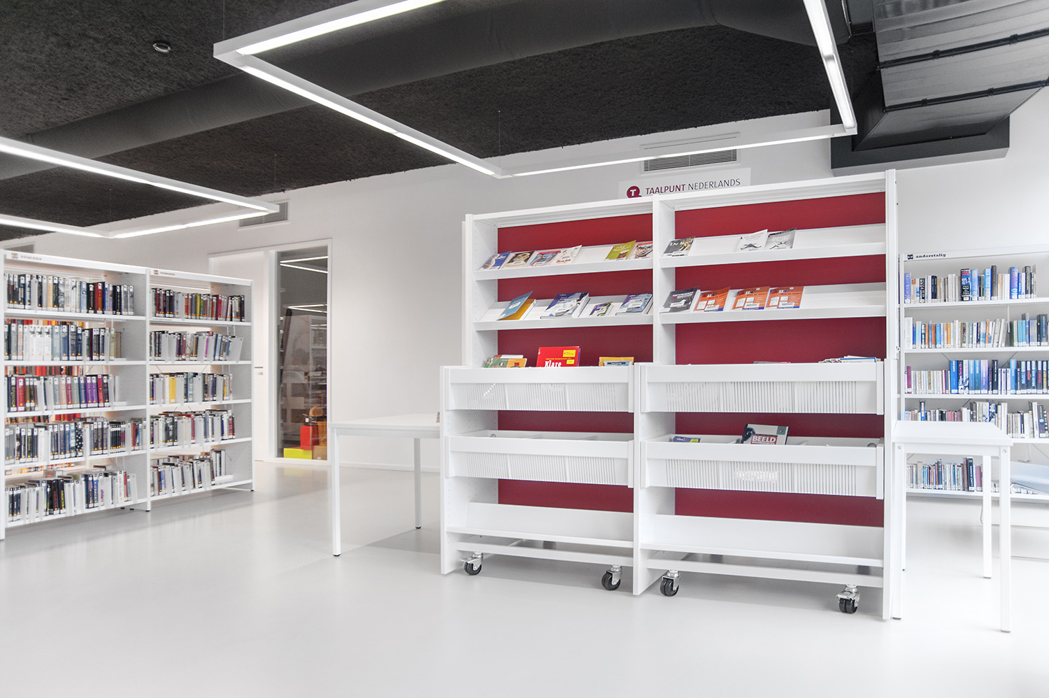 Designbureauet Pointiv havde et tydeligt designkoncept, da det nye bibliotek i Affligem skulle bygges. Konceptet var at skabe et bibliotek, som reflekterede et hjemligt miljø. Med vores kvalitetsmøbler og evne til at levere specialdesignede løsninger, viser resultatet at vi kunne imødekomme designkonceptet.