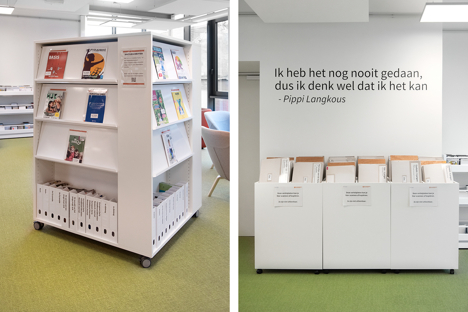 Fællesnævneren for biblioteket er, at det inviterer besøgende indenfor til at arbejde, slappe af og mødes. Lore Letermere, medarbejder, udtaler: ”Studerende, ansatte og besøgende er enige om, at det renoverede mediebibliotek er blevet et hyggeligt og inspirerende rum. Vi oplever, at de er meget positive over for det friske og åbne miljø. Mediebiblioteket er især skræddersyet til førskolebørnene og småbørnsundervisning i den legende og lette måde, det er indrettet på.”