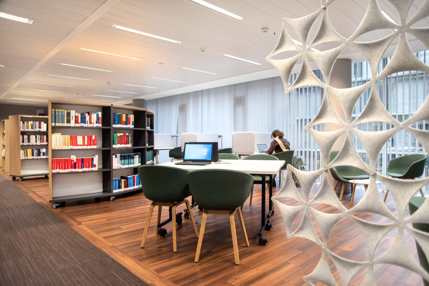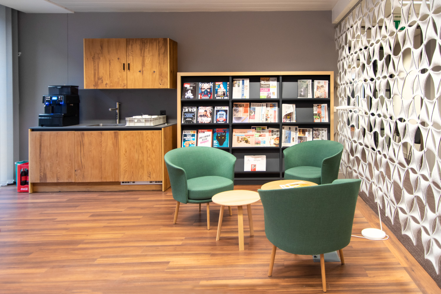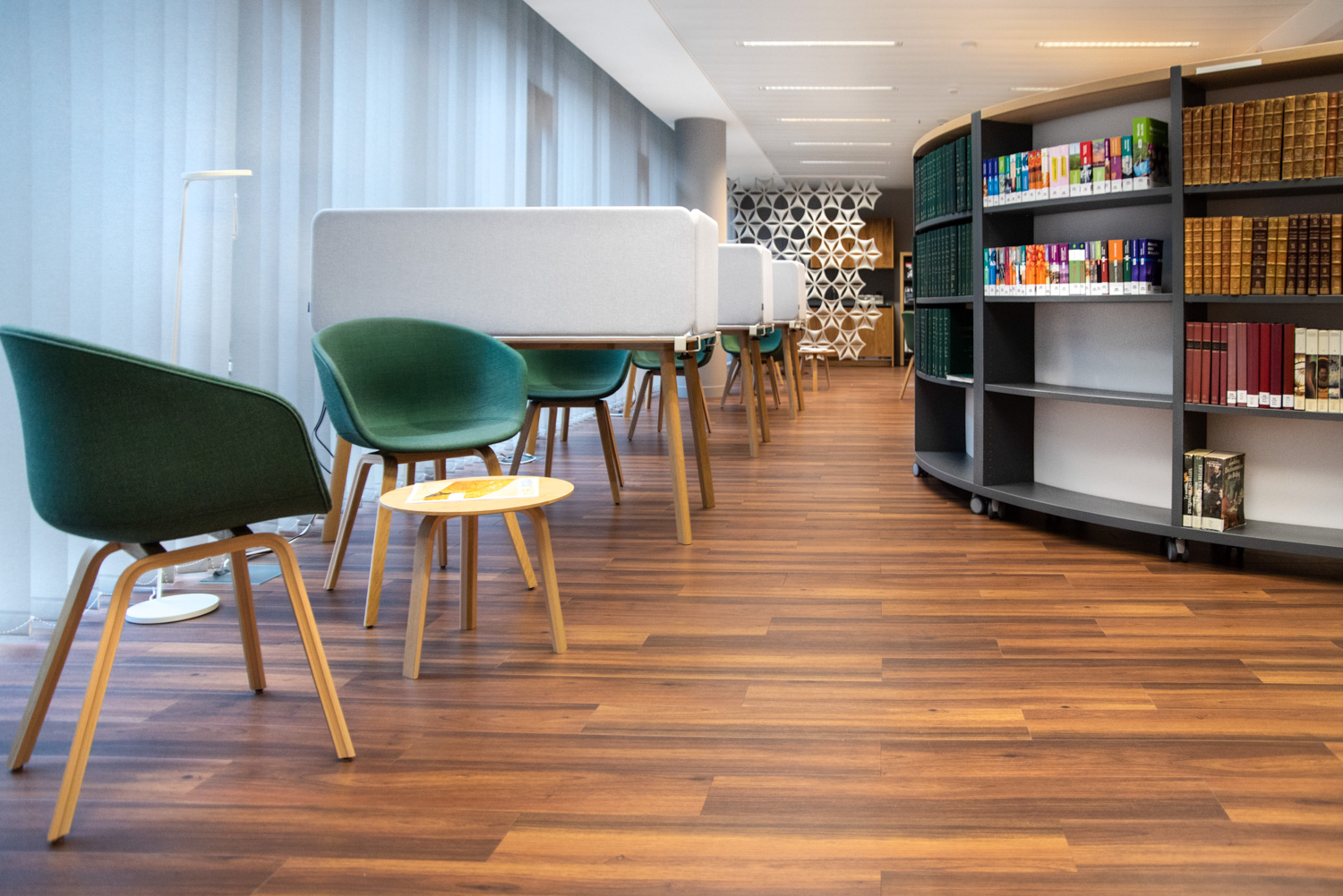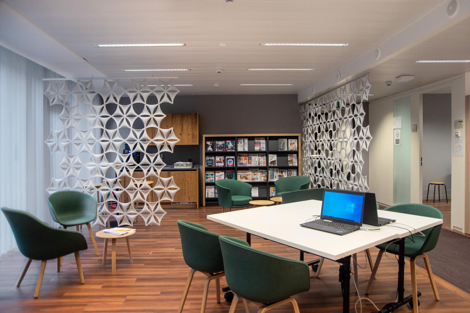 Den nye læsesal i biblioteket er designet til at tiltrække flere besøgende og giver mulighed for et godt arbejdsmiljø med en avis eller en kop kaffe i hånden.