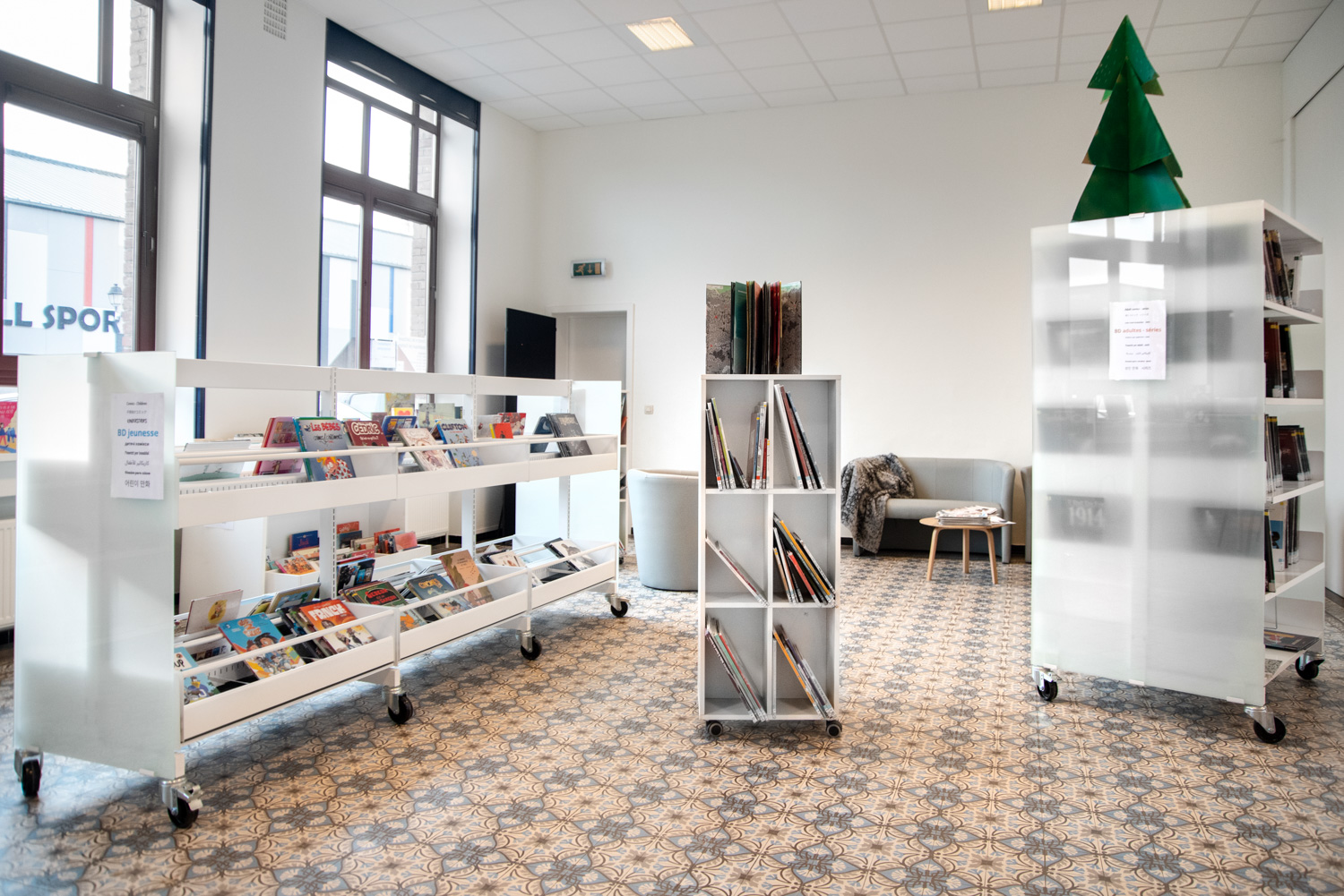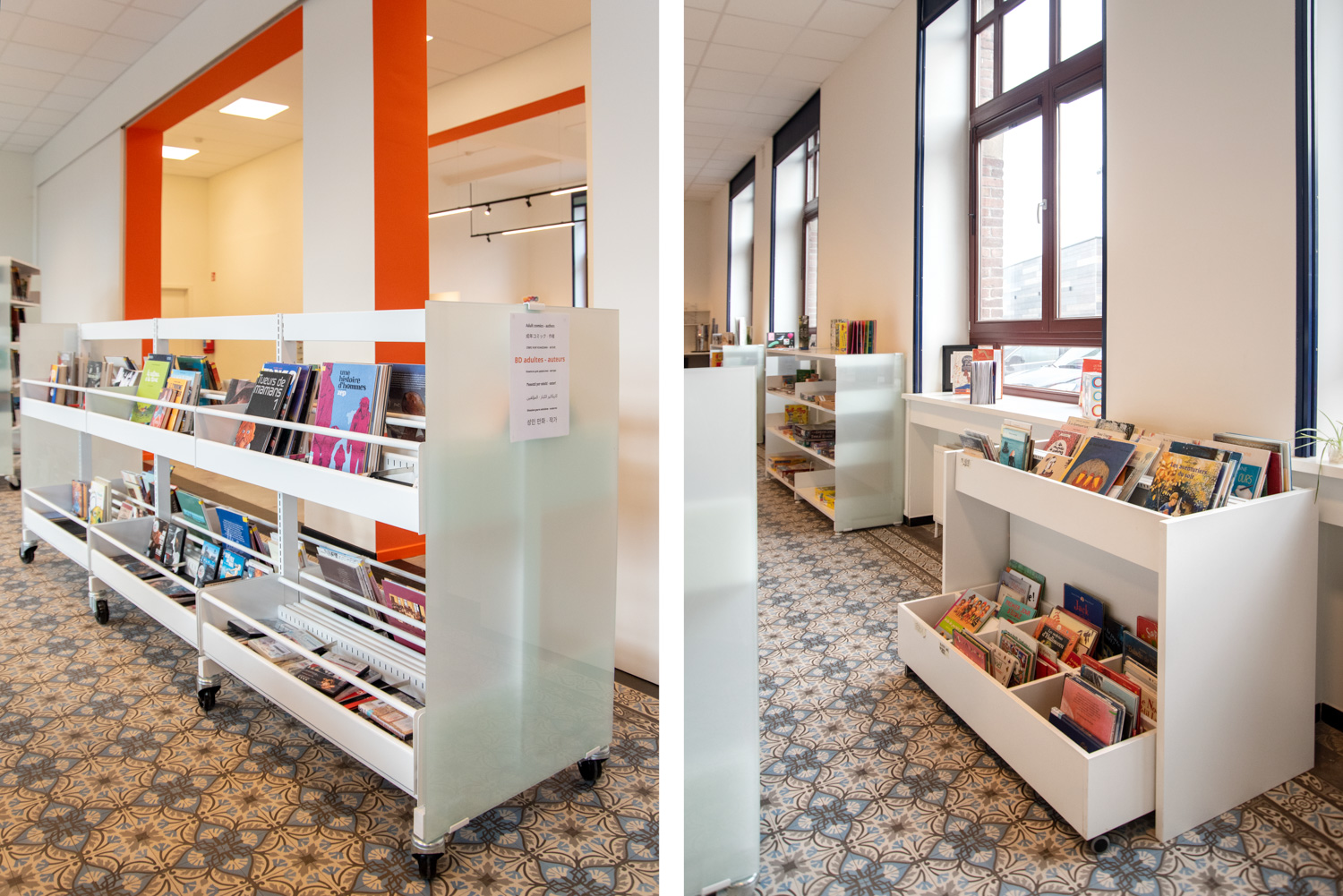 Nathalie Quiévreux, leder af kulturcentret i Celles, udtaler: "Indretningen er designet til at lette brugernes bevægelse i henhold til specifikke behov; Der er for eksempel et børnehjørne med lænestole til forældre i nærheden af børnebøgerne og en logisk rute til at præsentere en bestemt samling i udvalgte områder på biblioteket. Der er blevet lagt særlig vægt på tilgængelighed og praktisk anvendelighed, og biblioteket er blevet tilpasset forskellige målgrupper, som nemt kan cirkulere rundt. De besøgende er begejstrede: Det er meget bedre end før.”