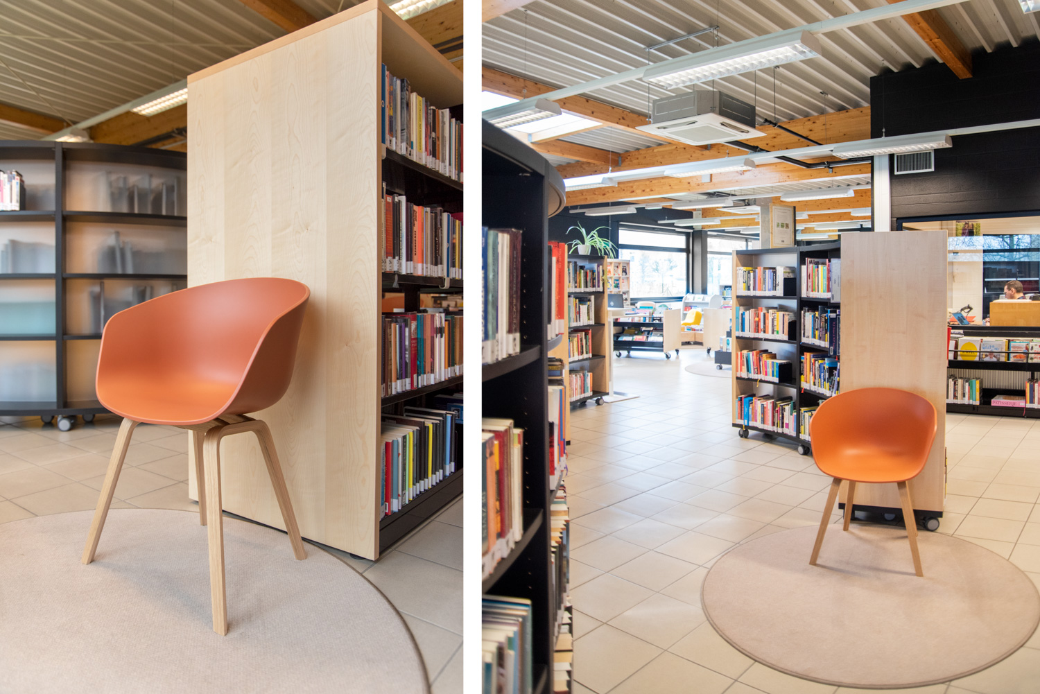 Schulz Benelux foreslog et indretningsdesign med fleksible, runde reoler og behagelige siddepladser. Bert Dekimpe: “Schulz Benelux viste sig at være en konstruktiv samarbejdspartner, som var åbne over for vores visioner og samtidig kom med gode råd. Det har resulteret i et fuldstændig genopfrisket bibliotek, hvor det er rart at opholde sig for såvel besøgende som ansatte.”