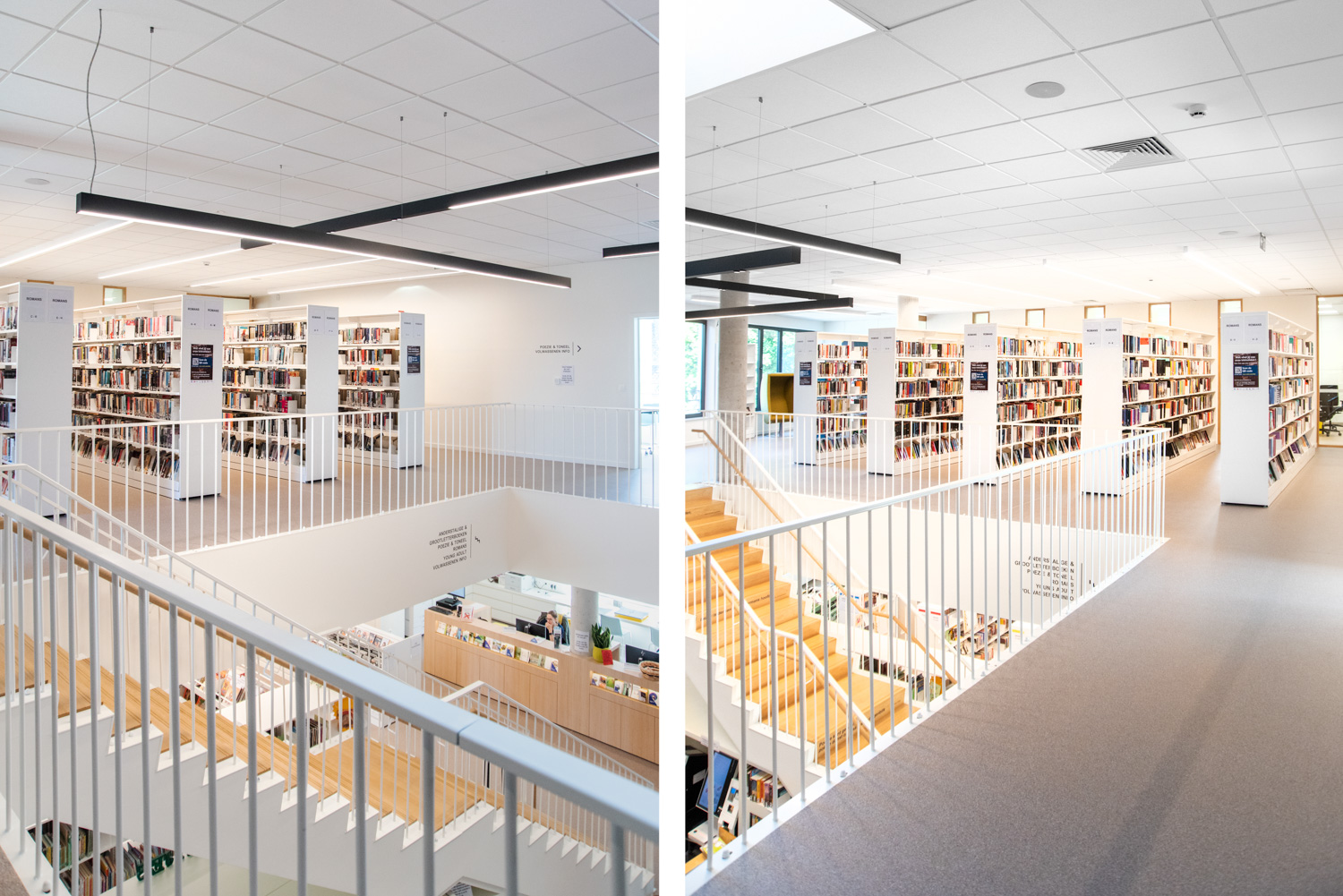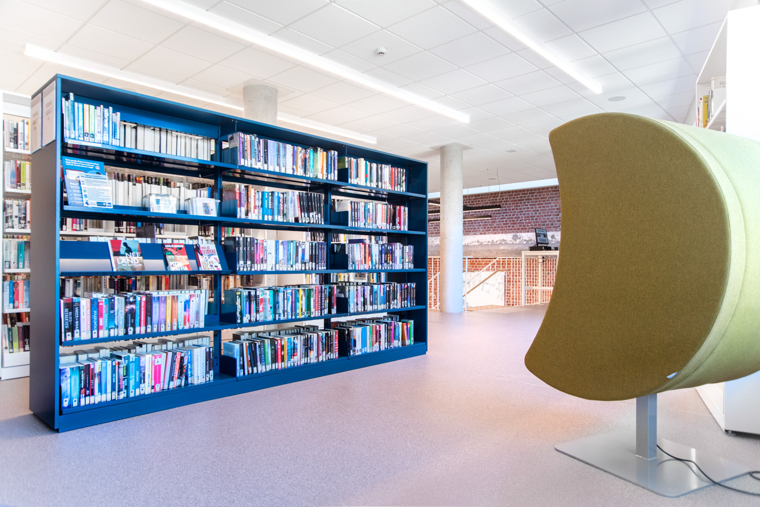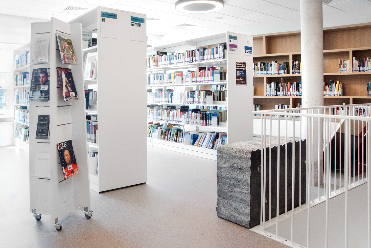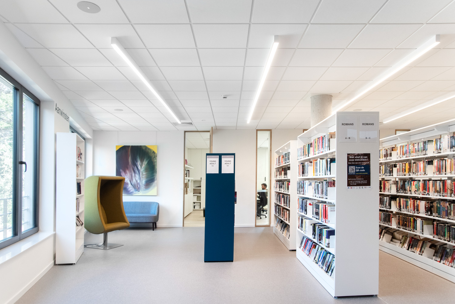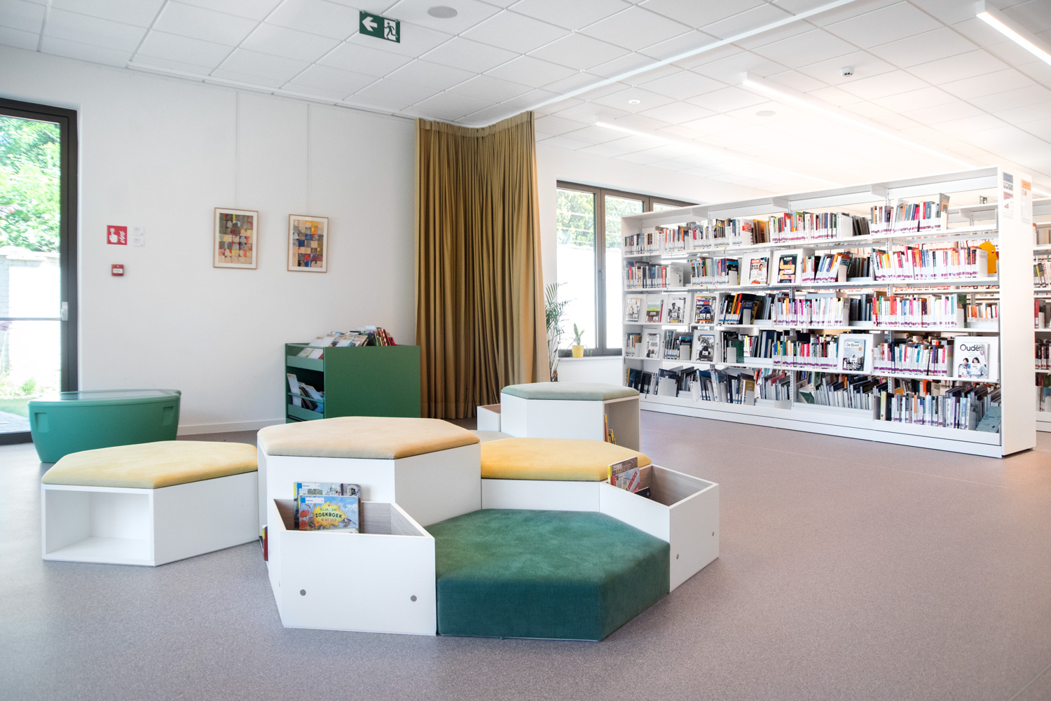 Bibliotekar, Elke Vandewalle, udtaler: “Vi har skabt hyggelige siddeområder forskellige steder på biblioteket, hvor vi gerne vil opfordre vores besøgende til at “blive hængende lidt”. Læsesalen er også et separat og hyggeligt rum med længere åbningstider end selve biblioteket. Samtidig har vi forsøgt at gøre biblioteket så åbent som muligt. Blandt andet ved at kombinere rum med lave lofter med lave reoler.”