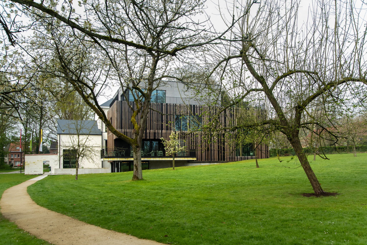Beliggende i det renoverede De Viron-landhus, som også rummer forskellige fritidsfaciliteter, er biblioteket blevet et attraktivt sted med særlig karakter. På stueetagen findes der et område med blade og magaziner, et læsehjørne samt en legetøjsafdeling. Ved siden af indgangen støder de besøgende på et fablab med en 3D-printer. Ungdomsafdelingen er placeret i kælderen, og ”stille-zonen” for voksne er på anden sal.