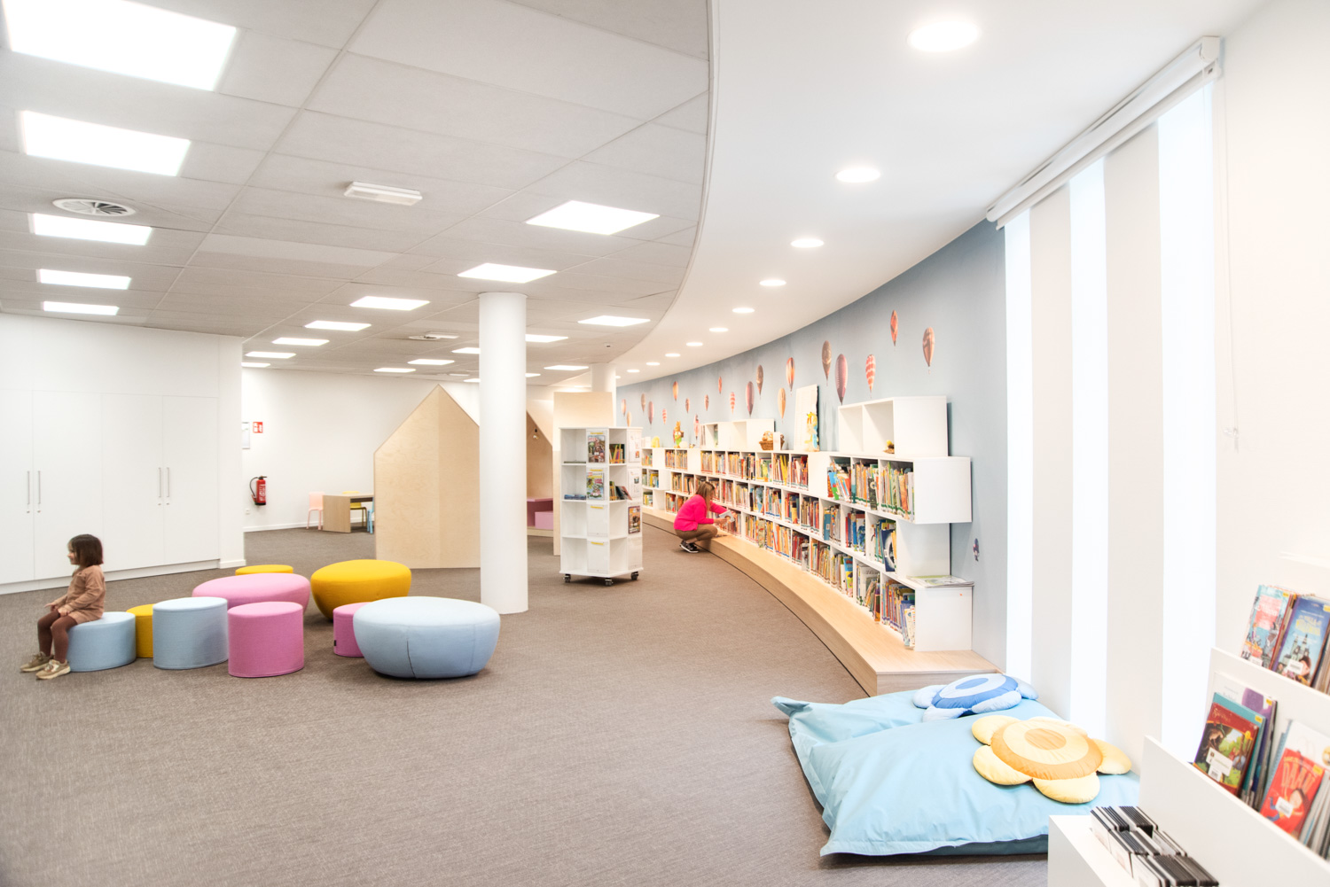 Besøgende kommer ikke kun til biblioteket for at låne bøger; de bruger også biblioteket til at studere i rolige omgivelser, læse avisen eller mødes over en snak. Derfor er der blevet installeret komfortable loungeområder. Nye materialer præsenteres ved indgangen samt på reolernes endegavle.