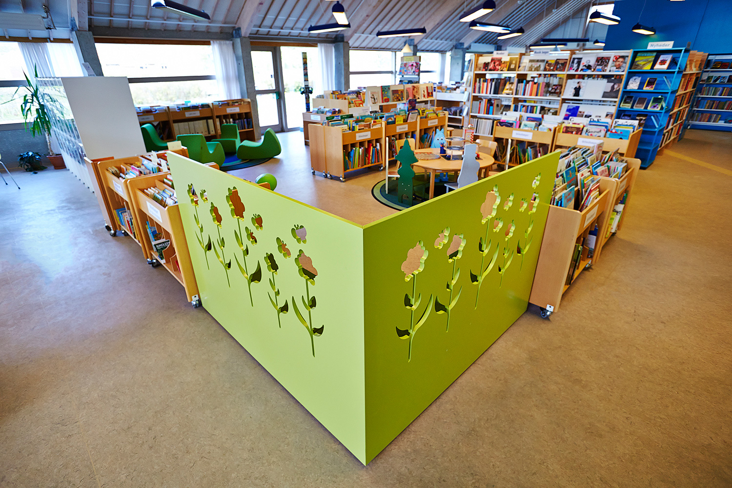 Indretningen med nye stole og borde, samt farvesætningen og designet, gør at hele biblioteket fremstår som nyt.