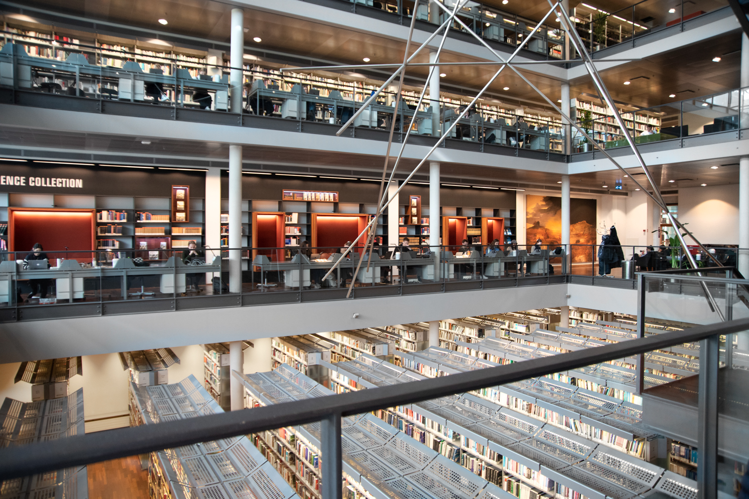 Æstetisk smukt bibliotek byder de studerende indenfor