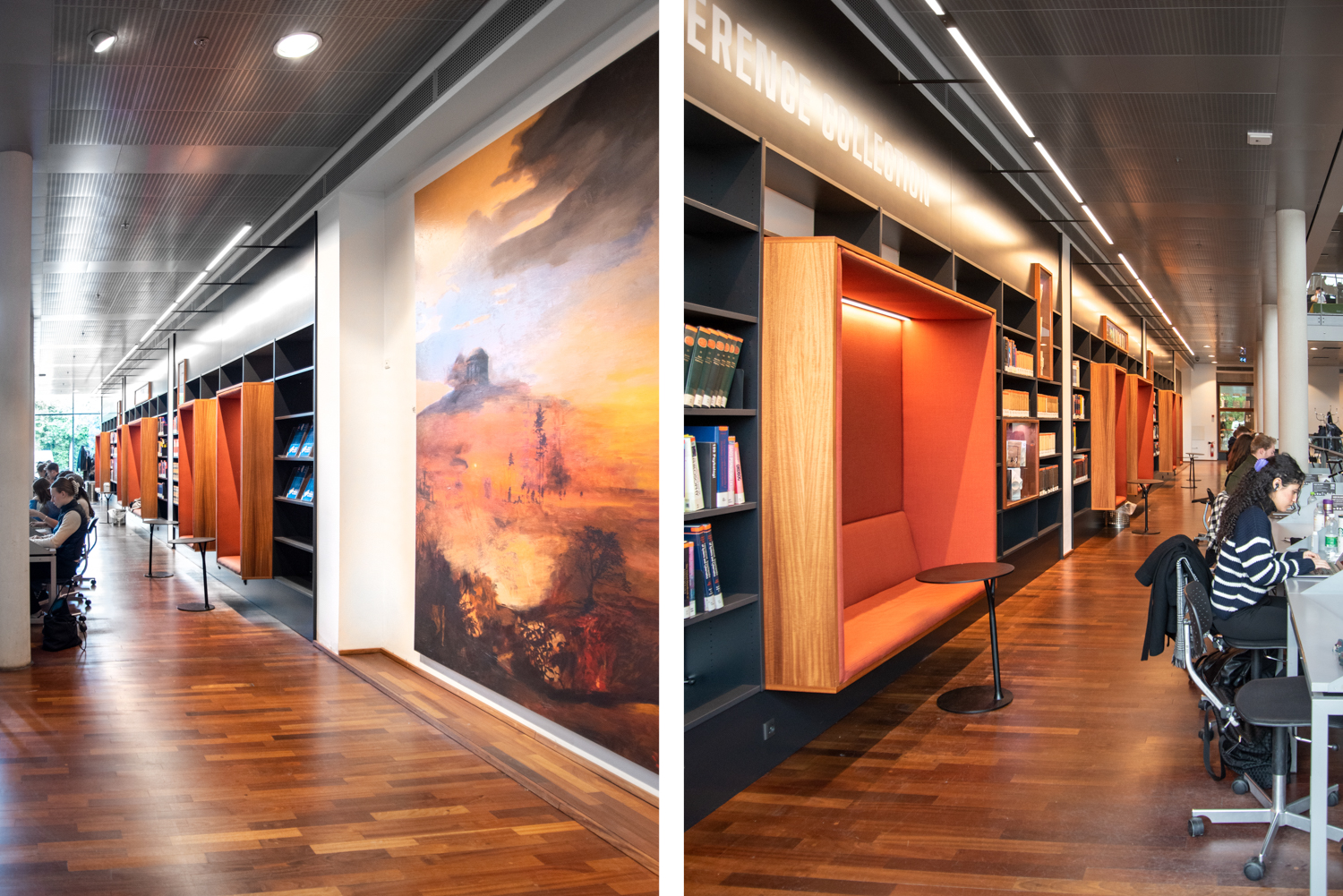Dette flotte bibliotek påkalder sig straks opmærksomhed, når du træder ind på Copenhagen Business School (CBS). Med sin imponerende æstetiske fremtoning, behagelige belysning og sine varme farver, har biblioteket gennemgået en omfattende makeover siden 2017, hvor indretningen af det moderniserede bibliotek gik i gang.