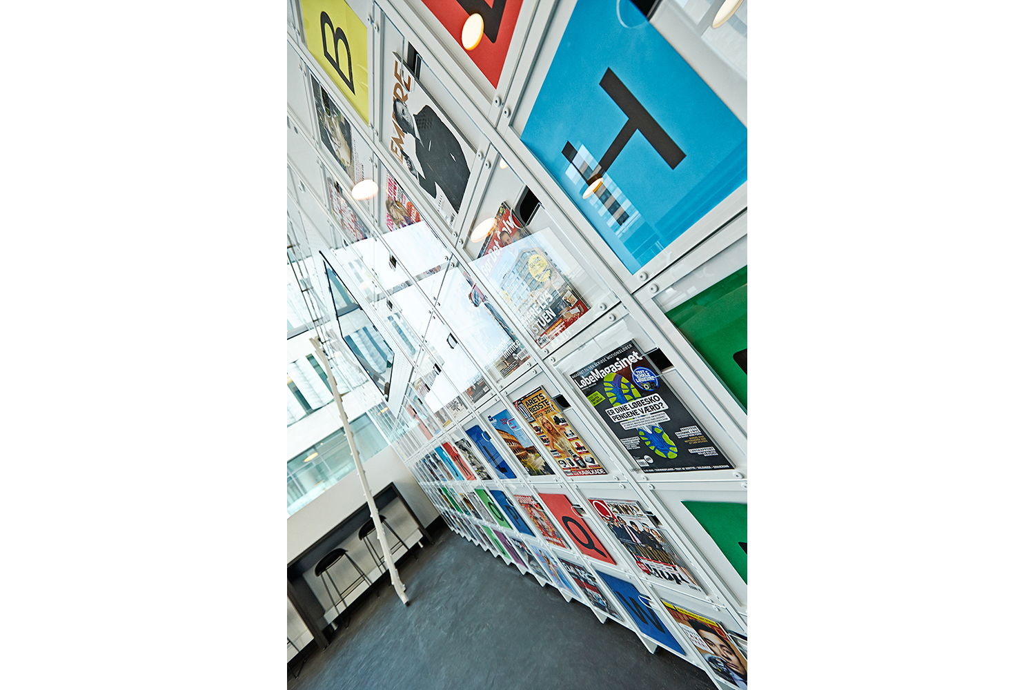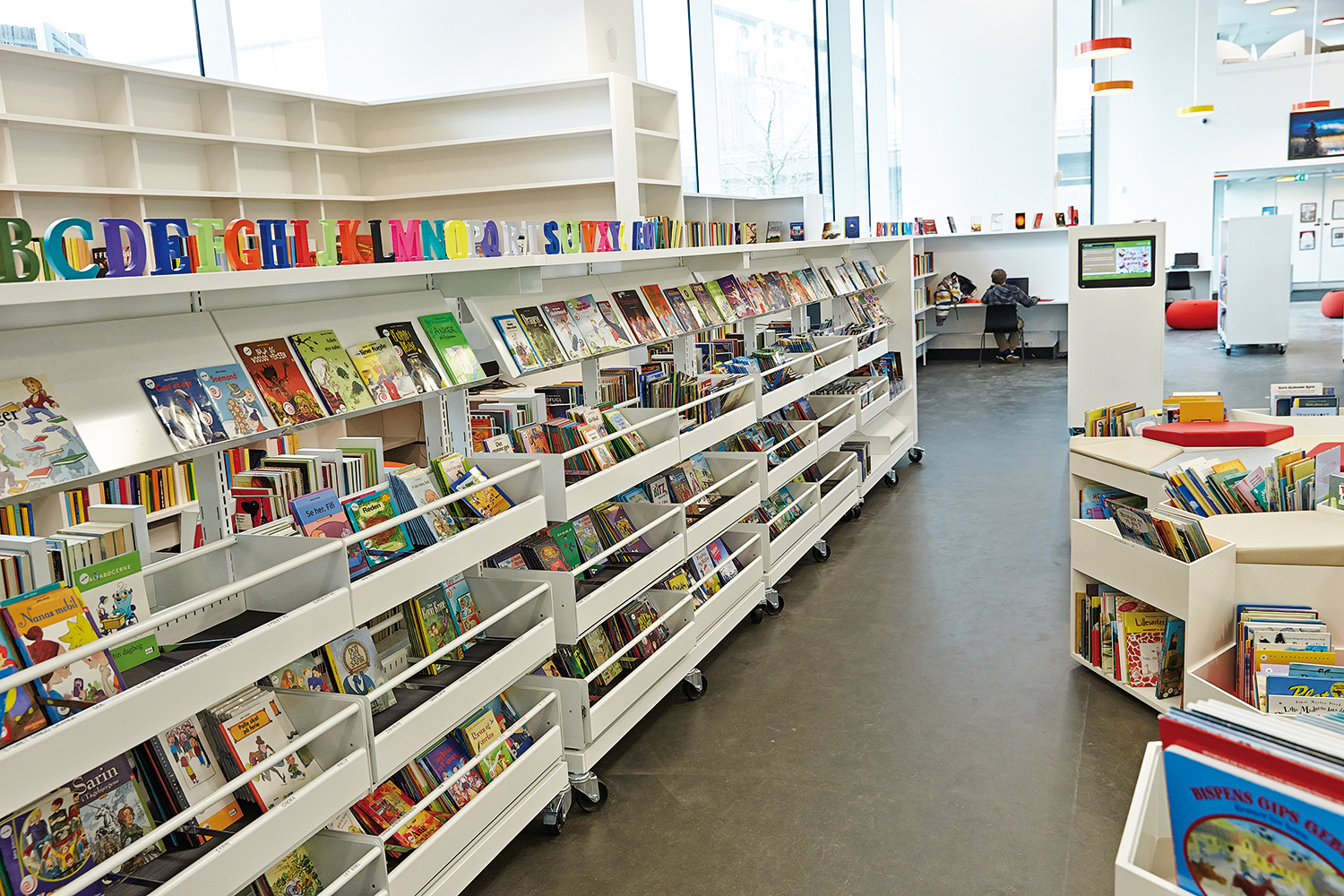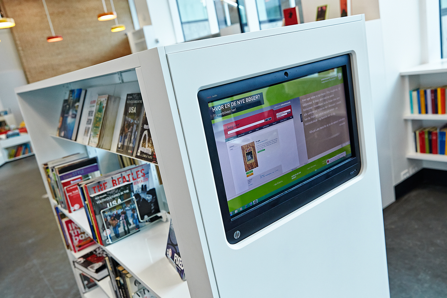 For det andet, er informationsteknologi integreret i møblerne og reolerne for at give en forstærket brugeroplevelse. Skærme er integreret i displayvæggen ved indgangen og på hver reol-ende. Og iPads er også tilgængelige til at assistere brugerne med at lære og opdage mere.