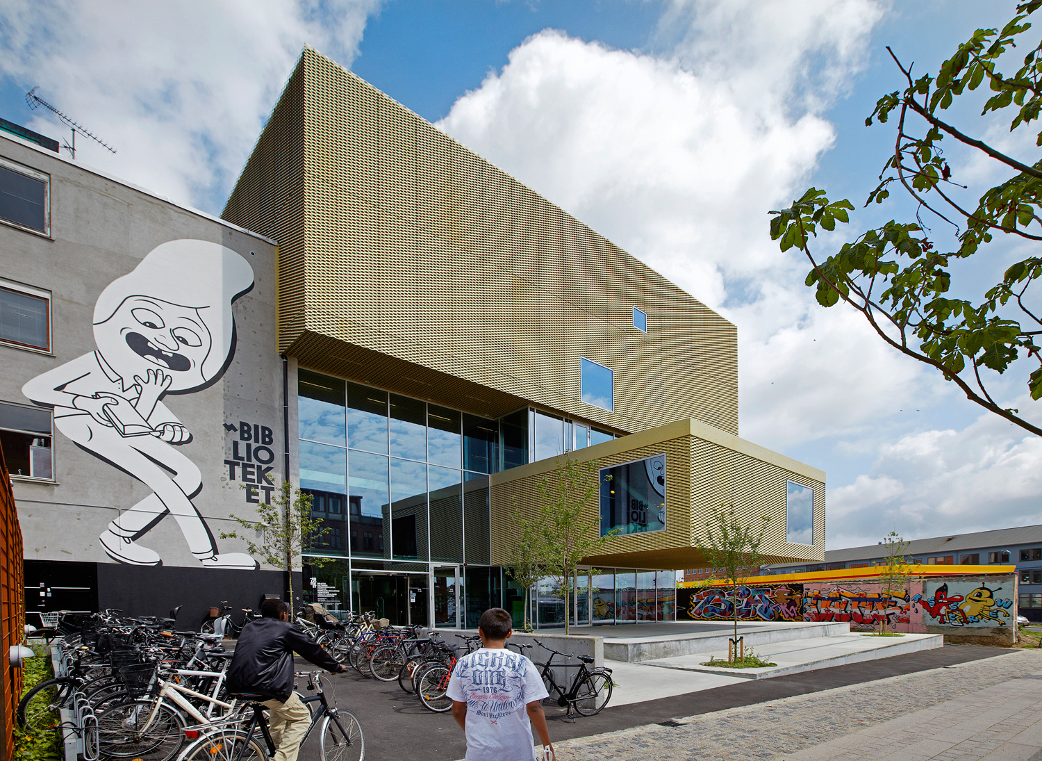 Stedet har sin egen sjæl, og arkitekterne og byplanlæggerne har både fanget og fornyet stedets essens. Gyldne, gennemhullede plader dækker facaden, og bygningen er lavet af fire blokke, som kan ses som fire bøger med forskelligt indhold.