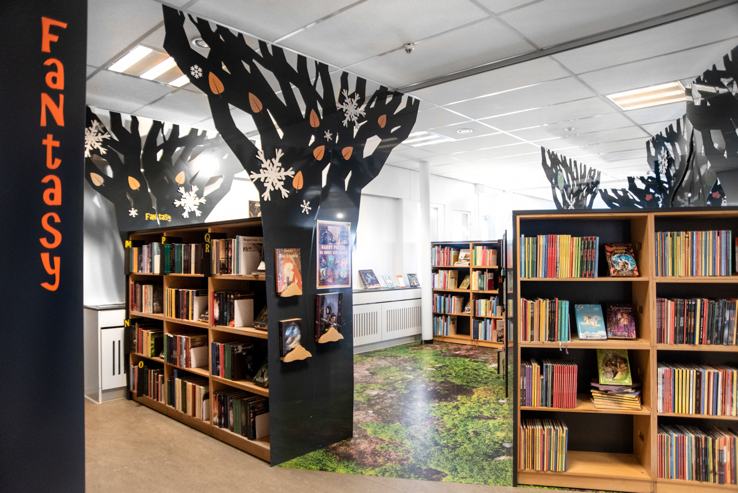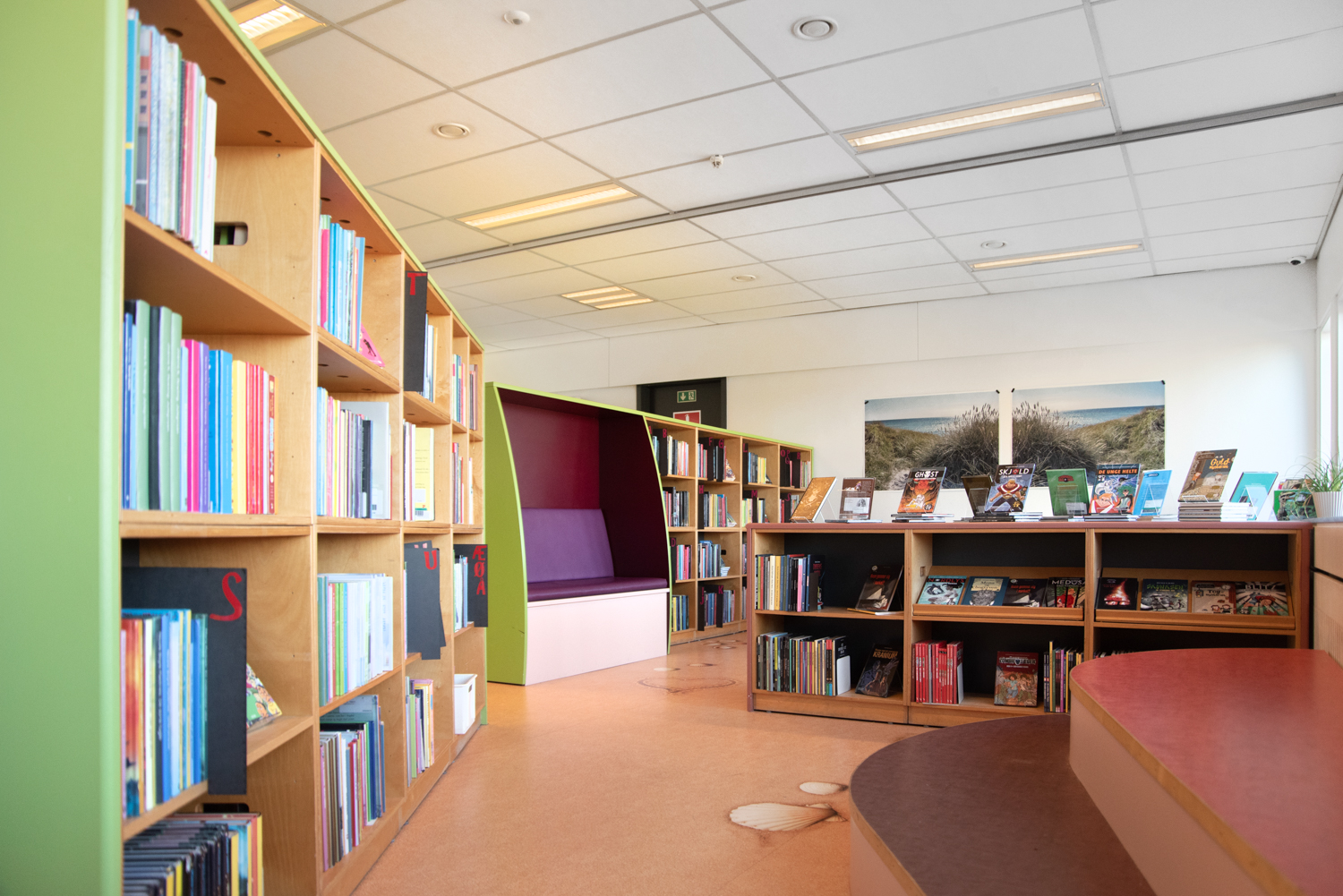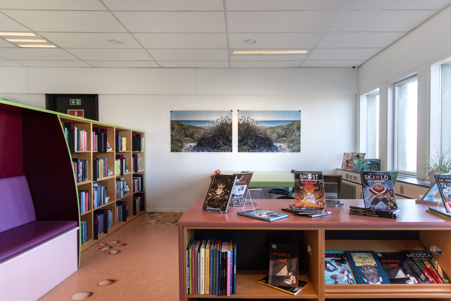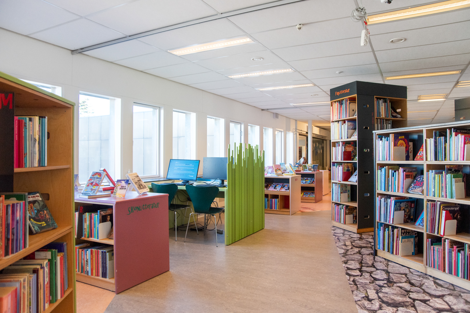 Nyindretningen har været med til at skabe en større rumopdeling med flere gode vinkler og afskærmede kroge. Tidligere var der én gennemgående passage gennem biblioteket, som nu er brudt op af en middelalderborg i midten af rummet. Ved at bryde rummet op, kan de besøgende mere uforstyrret nyde et hyggeligt ophold i skoven eller gå på opdagelse ved stranden eller i borgens spillehule. Et andet element i indretningen har været bæredygtighed. Gamle reoler er således blevet genanvendt og sammensat på nye måder, så de passer til den nye indretning.