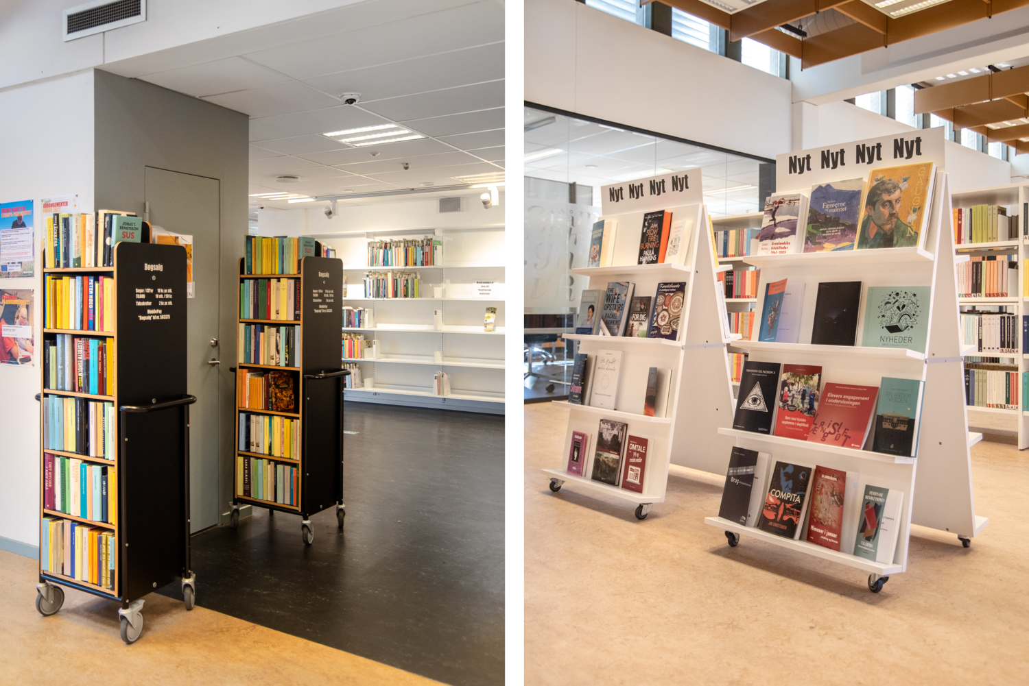 ”Når tingene fungerer og har en vis kvalitet, er det vigtigt for os, at de ikke bare bliver kasseret. Vi har blandt andet fået malet bagvæggene på reolerne antracitgrå i stedet for røde, så de fremstår nye og stadig har liv. Vi har kun oplevet, at folk er positive og synes, det er et fedt rum at komme ind i,” forklarer Pia.