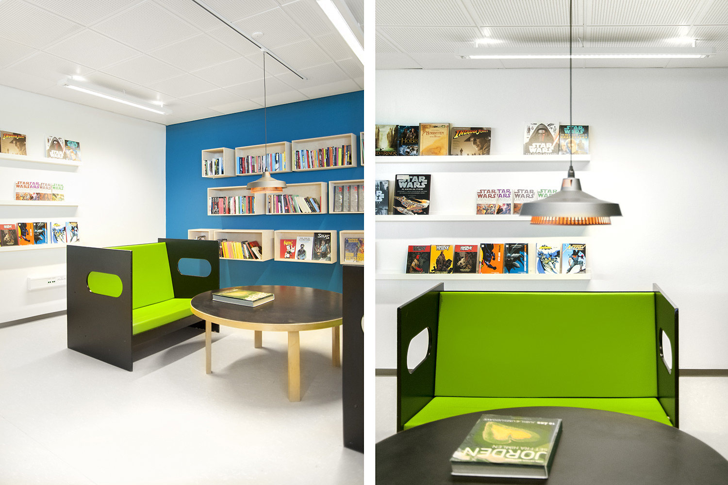 Produkter anvendt til Biblioteket Kilden, Kildegaardskolen, Danmark