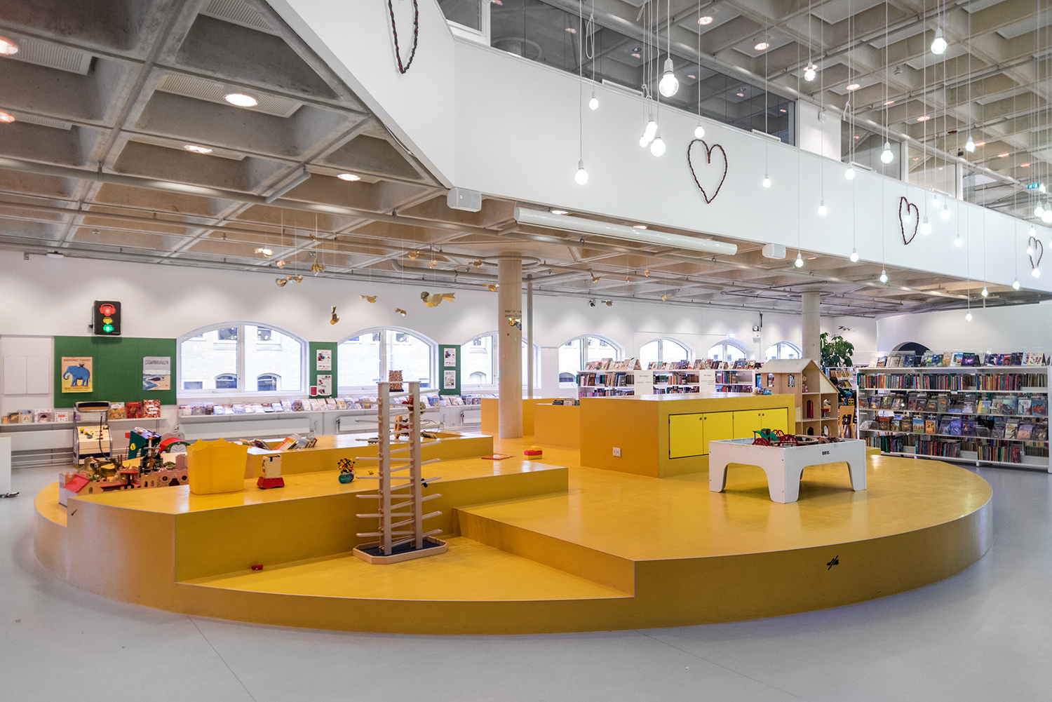 Med ombygningen har kulturhuset fået nyt liv og nye muligheder for attraktive kulturtilbud. Den nye indretning af biblioteket har skabt en række nye rum i rummet. Her er der plads til både oplevelser, fordybelse og leg.