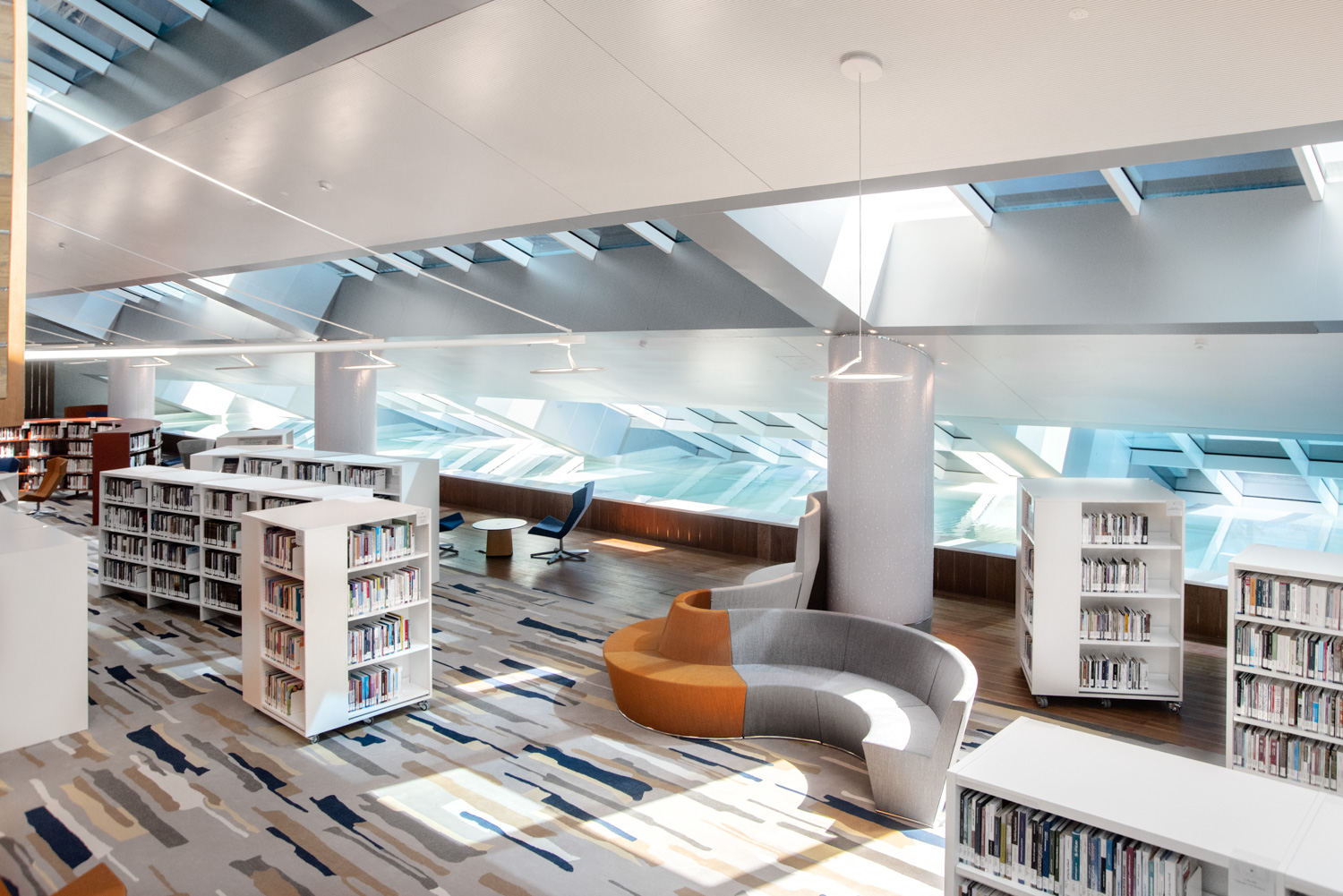 Mohammed bin Rashid Bibliotek i Dubai er et karakteristisk center for kultur og viden beliggende langs kanalen Dubai Creek og designet som en traditionel islamisk talerstol. Biblioteket er fordelt på syv etager og har over en million bøger på flere forskellige sprog i både fysiske og digitale formater. Lammhults Biblioteksdesign vandt udbuddet om at designe og indrette det imponerende bibliotek i den majestætiske bygning.