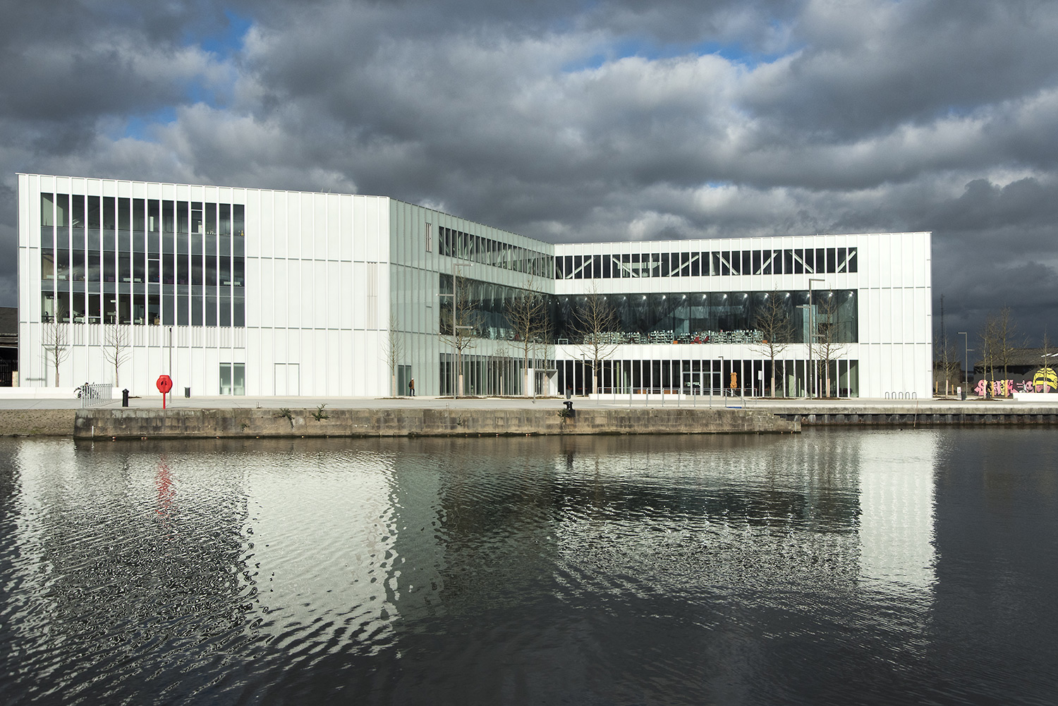 Glasfacaden forbinder parken på den ene side med fodgængerområdet på den anden side og de to store indgange på begge sider skaber en sammenhæng og interaktion med det omkringliggende område. Bibliotekets nøgleposition, ved at være placeret imellem den historiske del og byens nye distrikt, har imødekommet byens ønske om et nyt, centralt mødested.