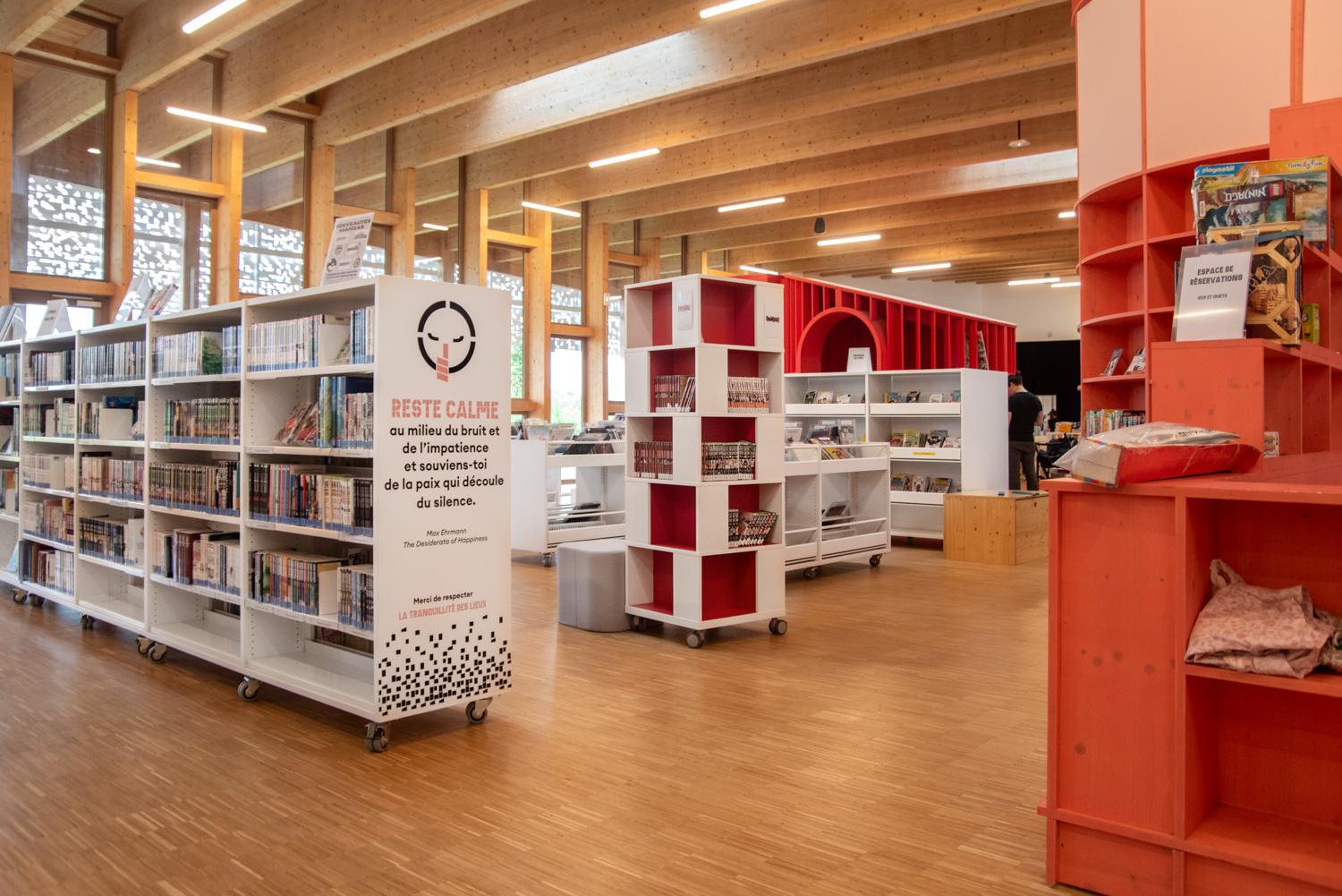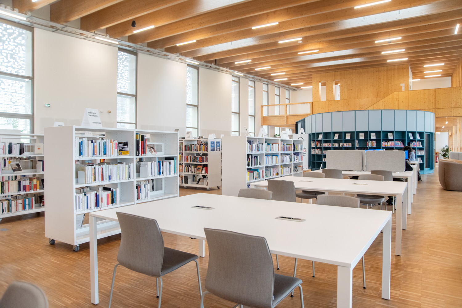 I kulturhuset i Herblay-sur-Seine smelter bibliotekets læseområder, legeområderne fra legeteket og et fleksibelt auditorium sammen i én samlet helhed. Auditoriet kan bruges til både arrangementer, koncerter og filmvisninger, og den åbne, modulære planløsning giver mulighed for at tilpasse huset til mange forskellige aktiviteter.