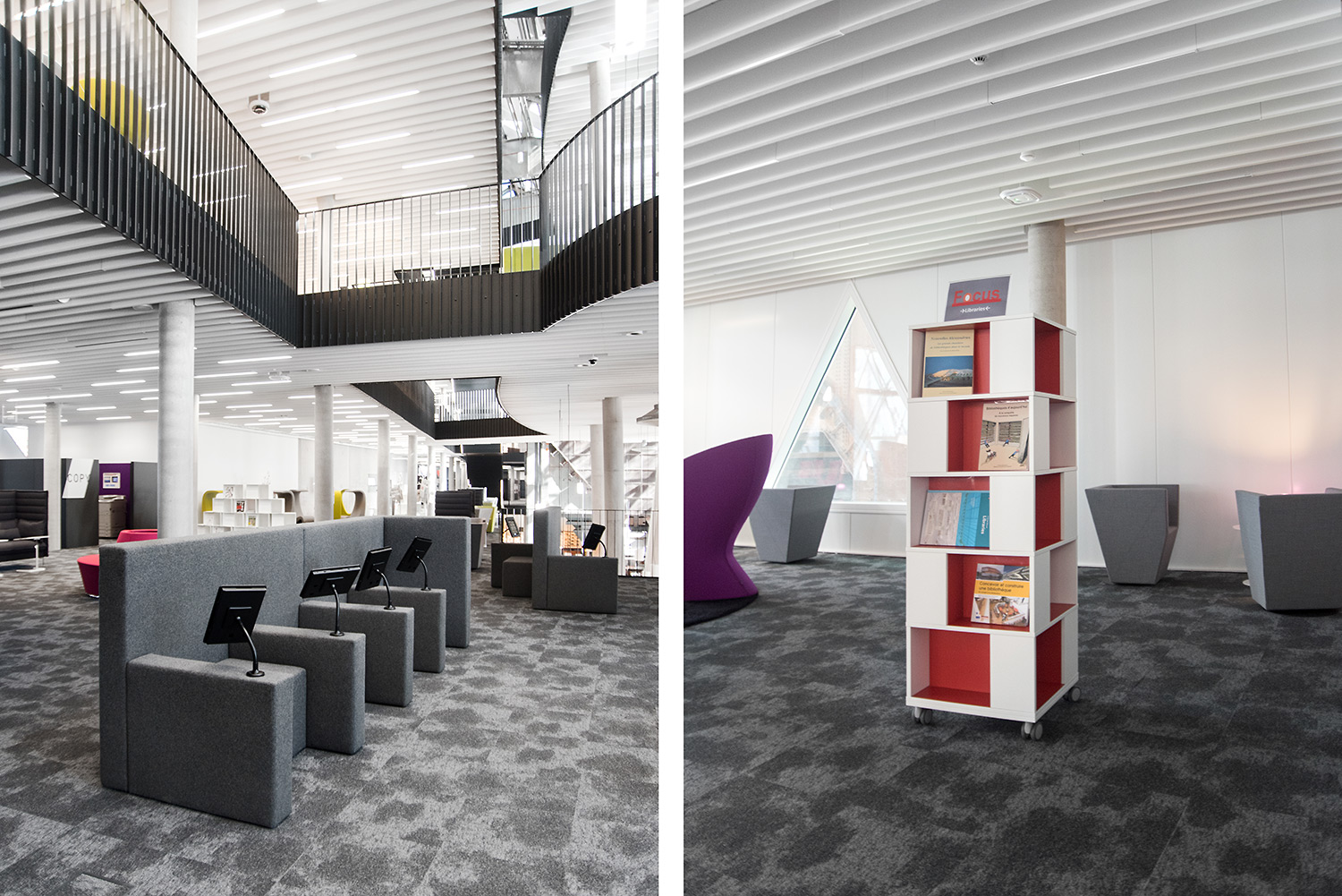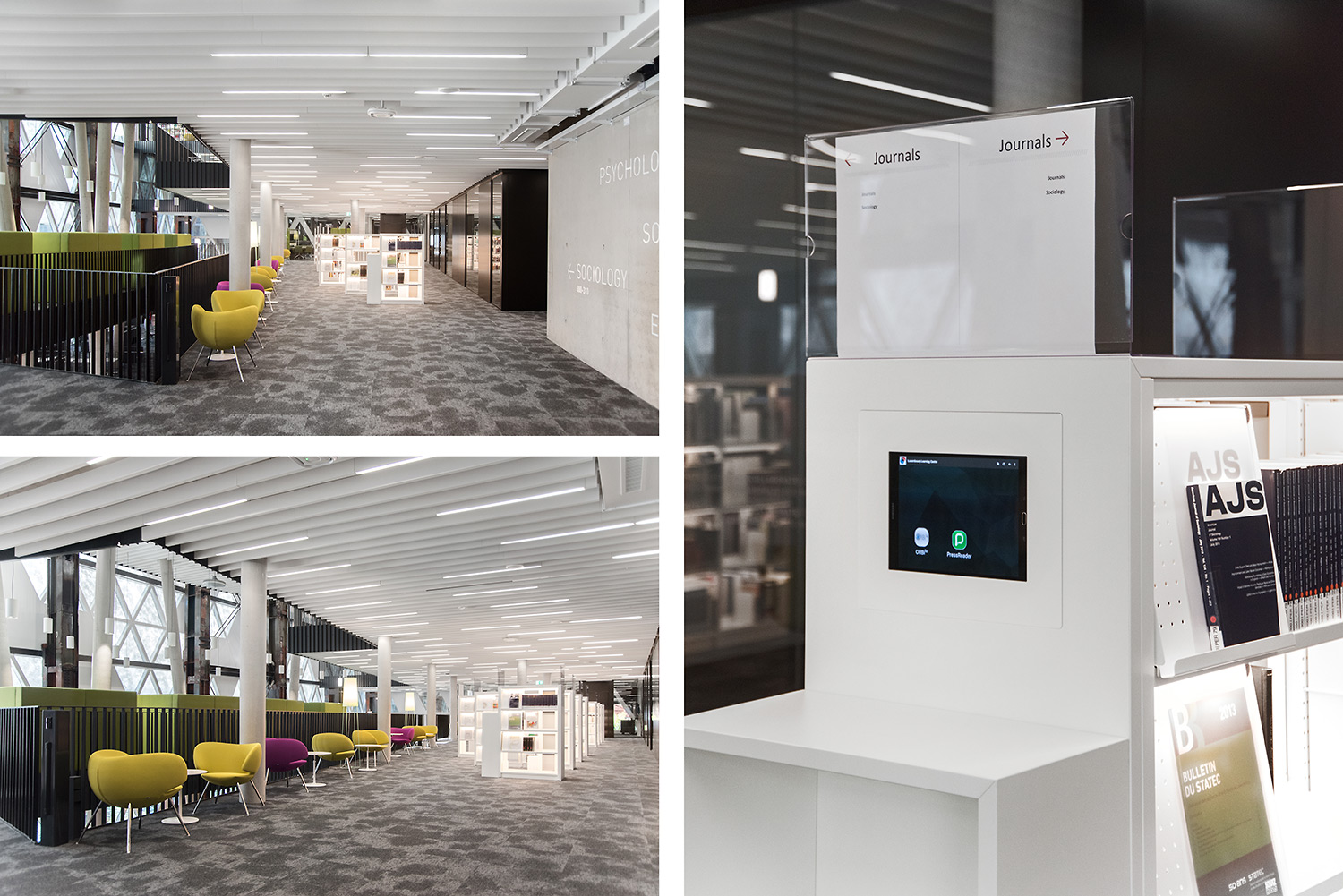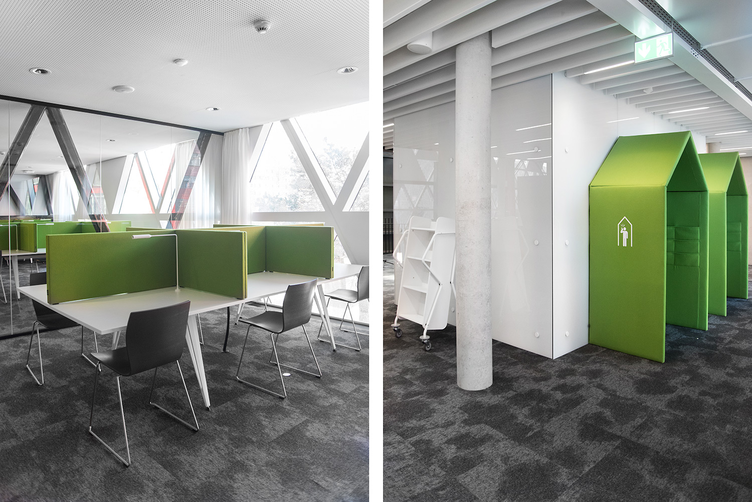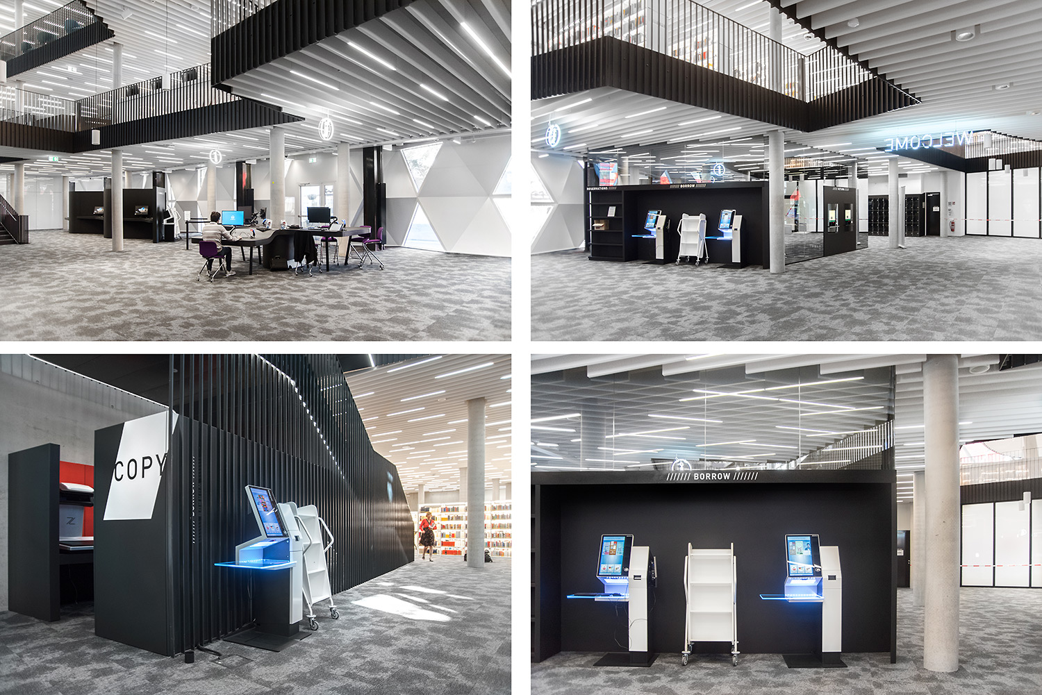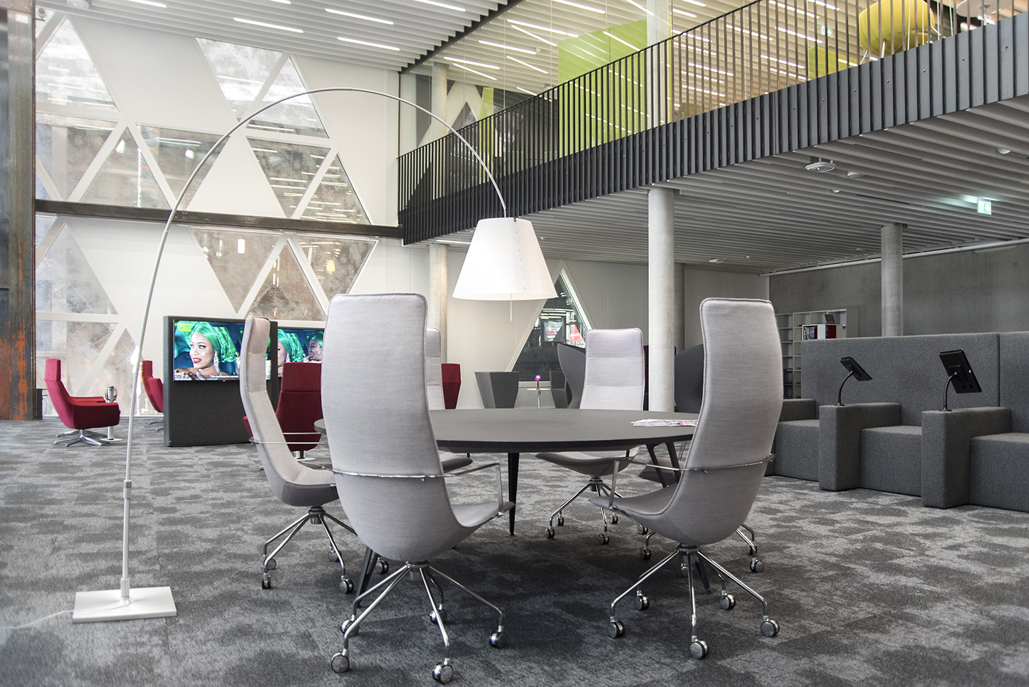 Den enestående arkitektur sammen med møbler af høj kvalitet skaber en attraktiv og fleksible ramme, der gør det videnskabelige bibliotek til et fornøjeligt sted at mødes, arbejde og dele viden.