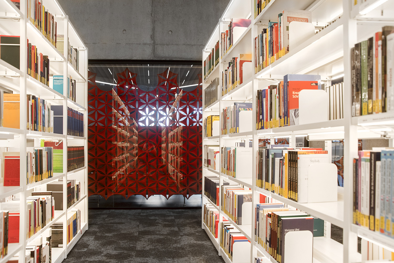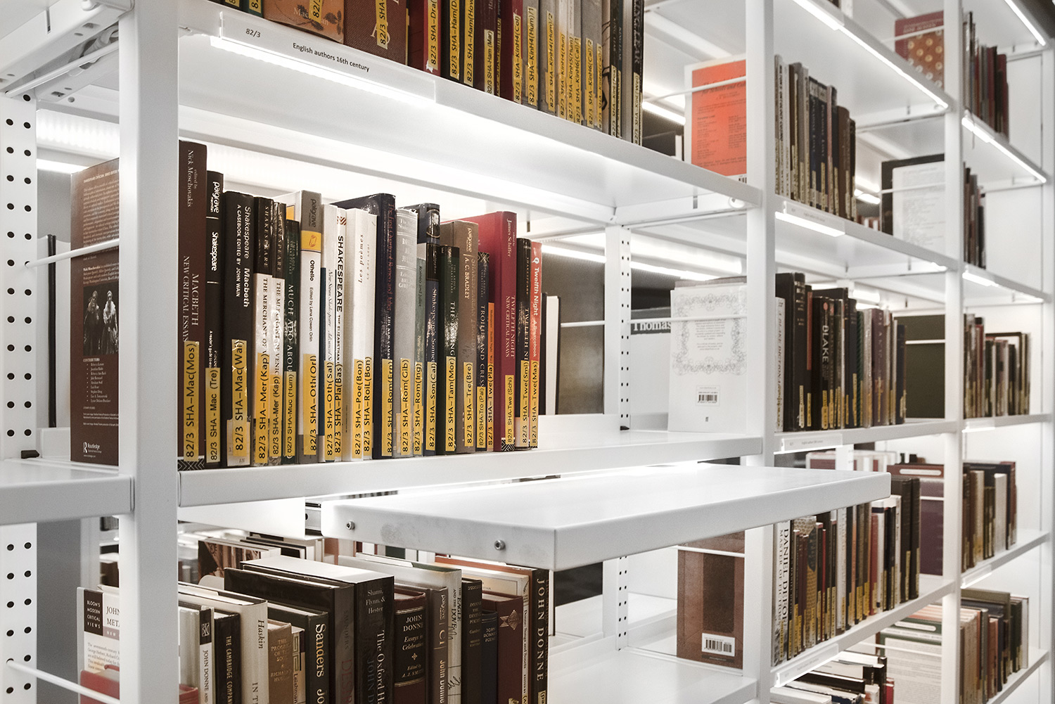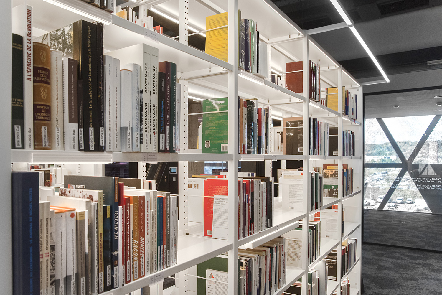 Med dets klare design og praktiske brugervenlighed forsyner vores Uniflex reolsystem med integreret LED-lys biblioteket med 10,7 km hyldekapacitet fordelt på 5 etager.