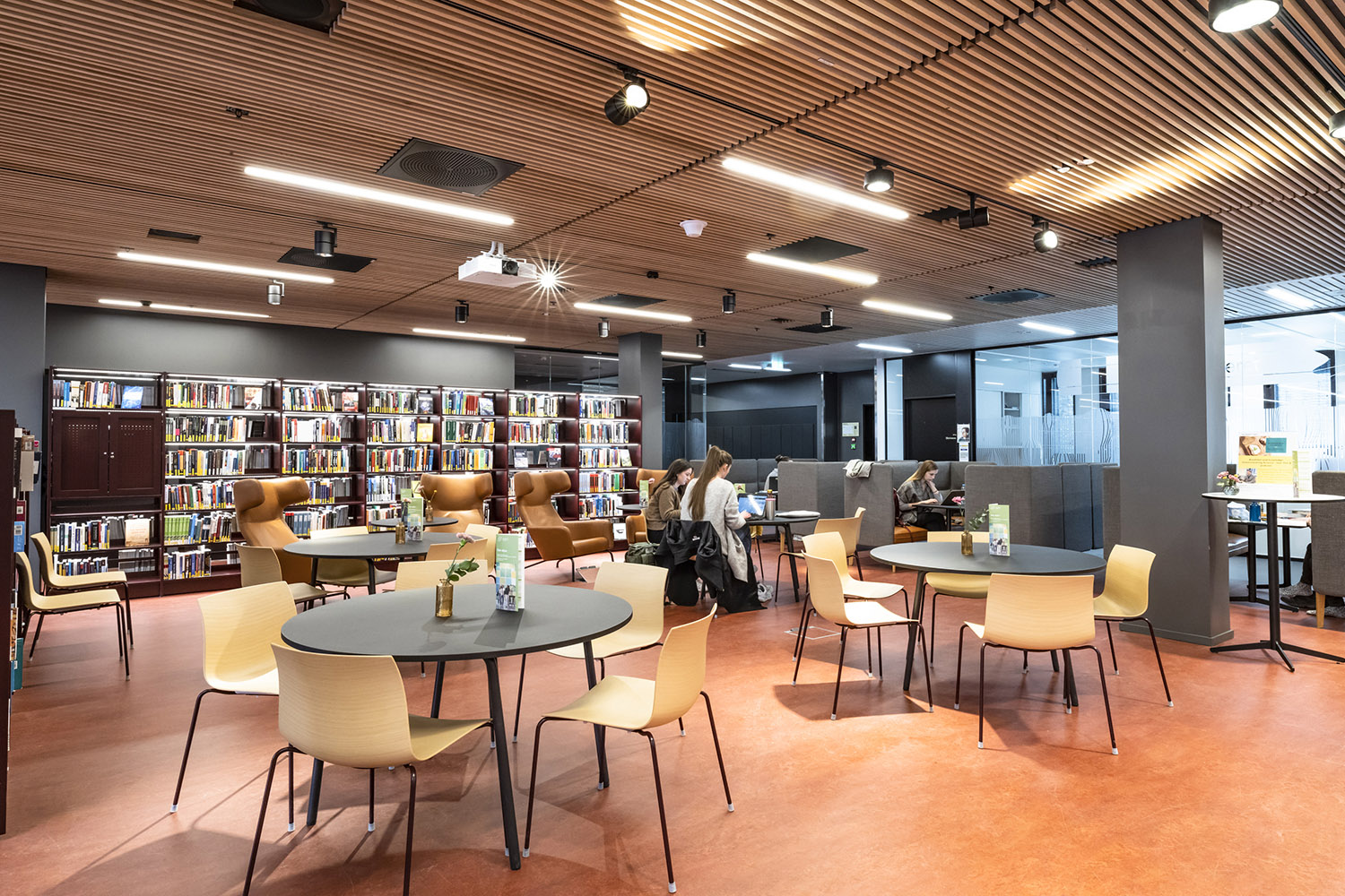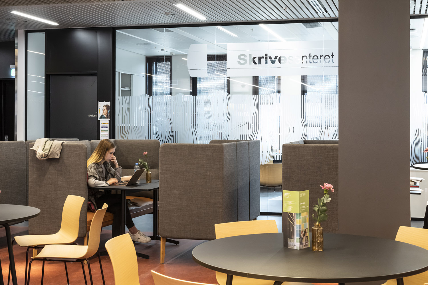 Indbydende siddeområder er vigtigt, og i biblioteket finder man både individuelle læsepladser og pladser til gruppearbejde.