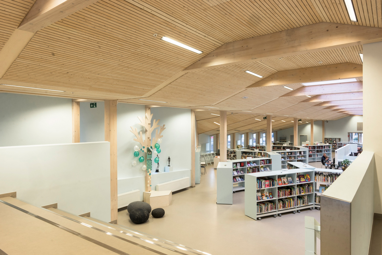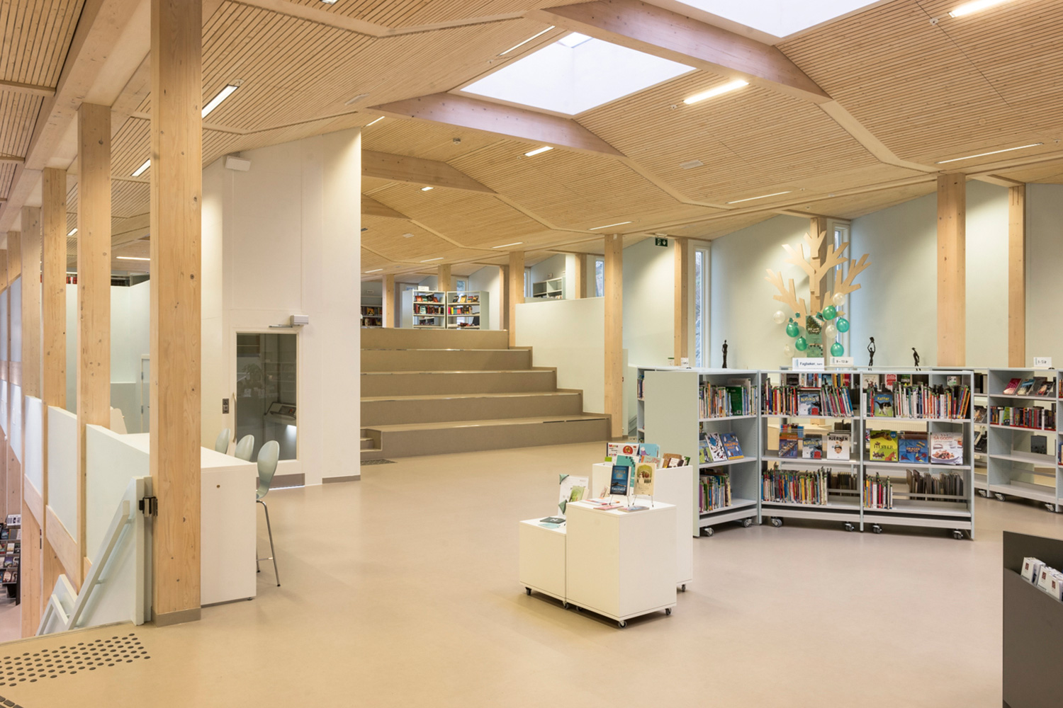 Biblioteket har plads til siddegrupper, læseområder, møderum, café, filmrum og egen ungdomsafdeling. Der er også plads til arrangementer og udstillinger.