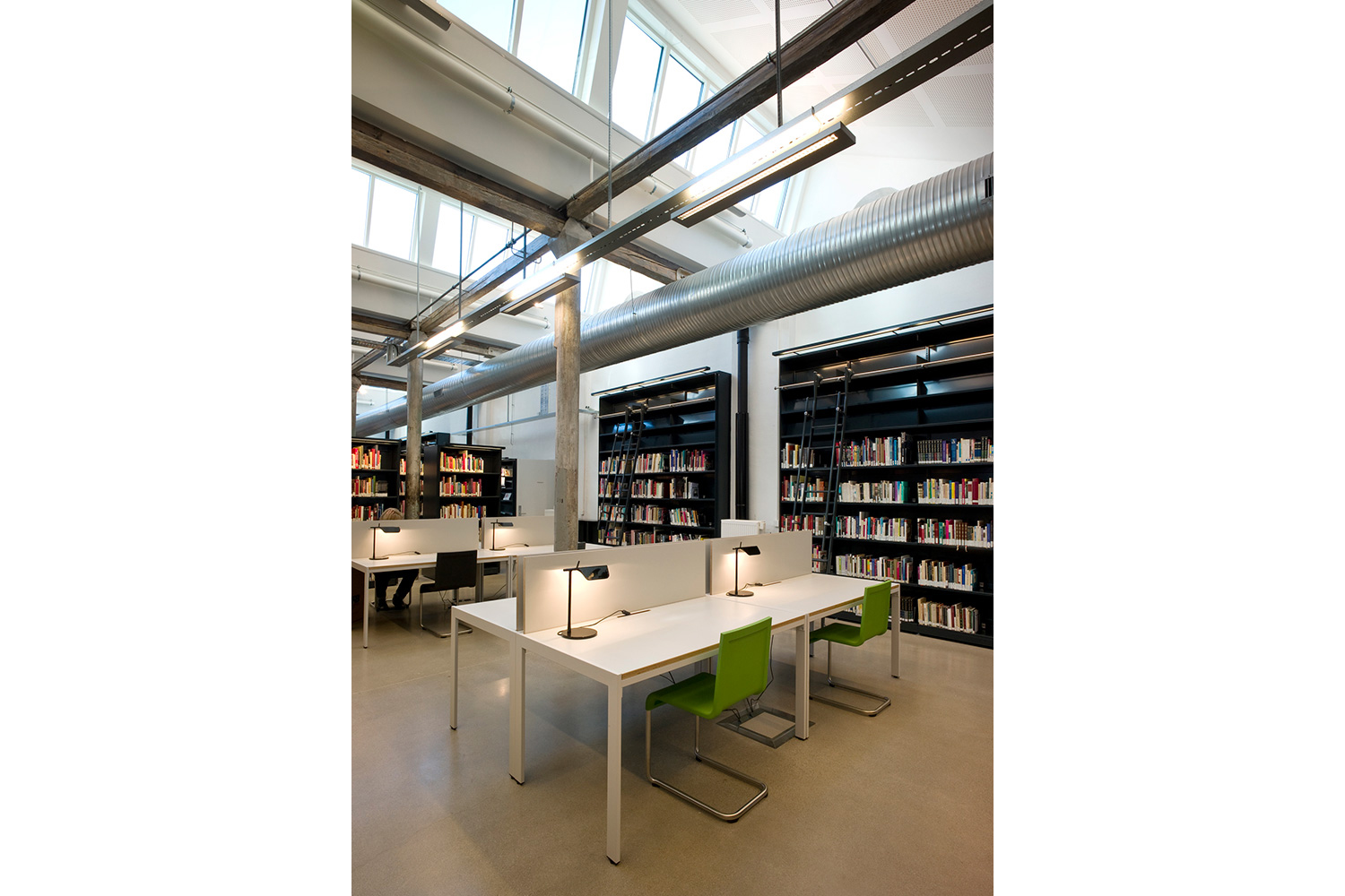 The old factory has a total area of 40,000 sqm and the library is an important part. With a mix of old and new, the design gives room for creativity and cares for the history. The library is one of the most modern in Norway and a vital resource for students and faculty.