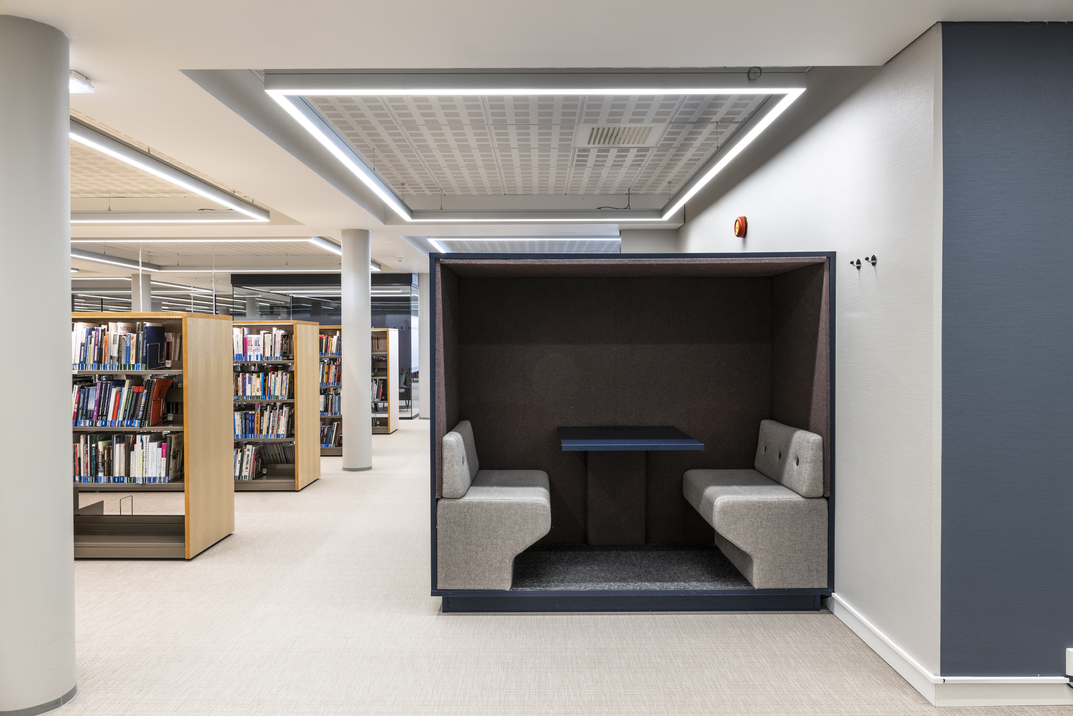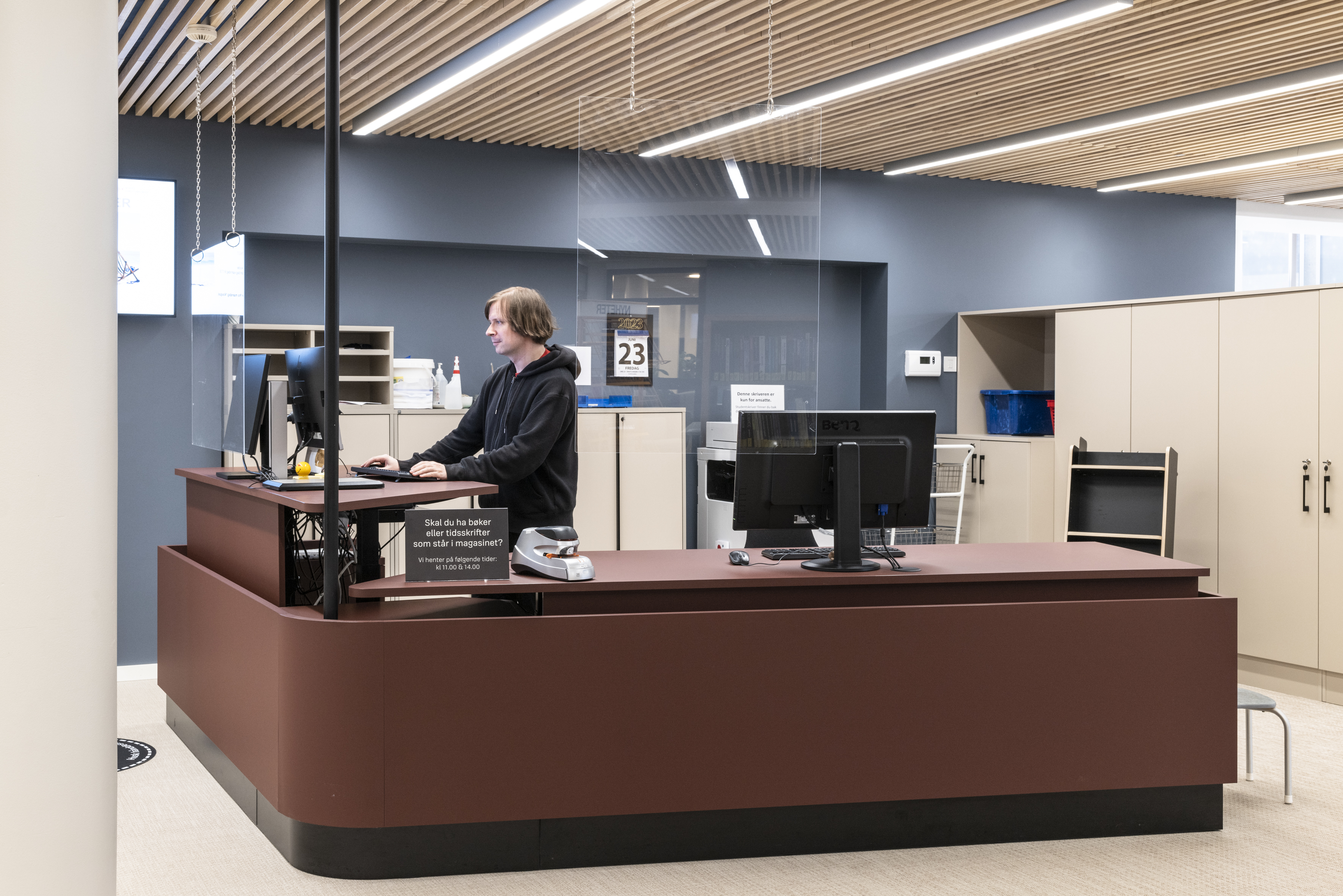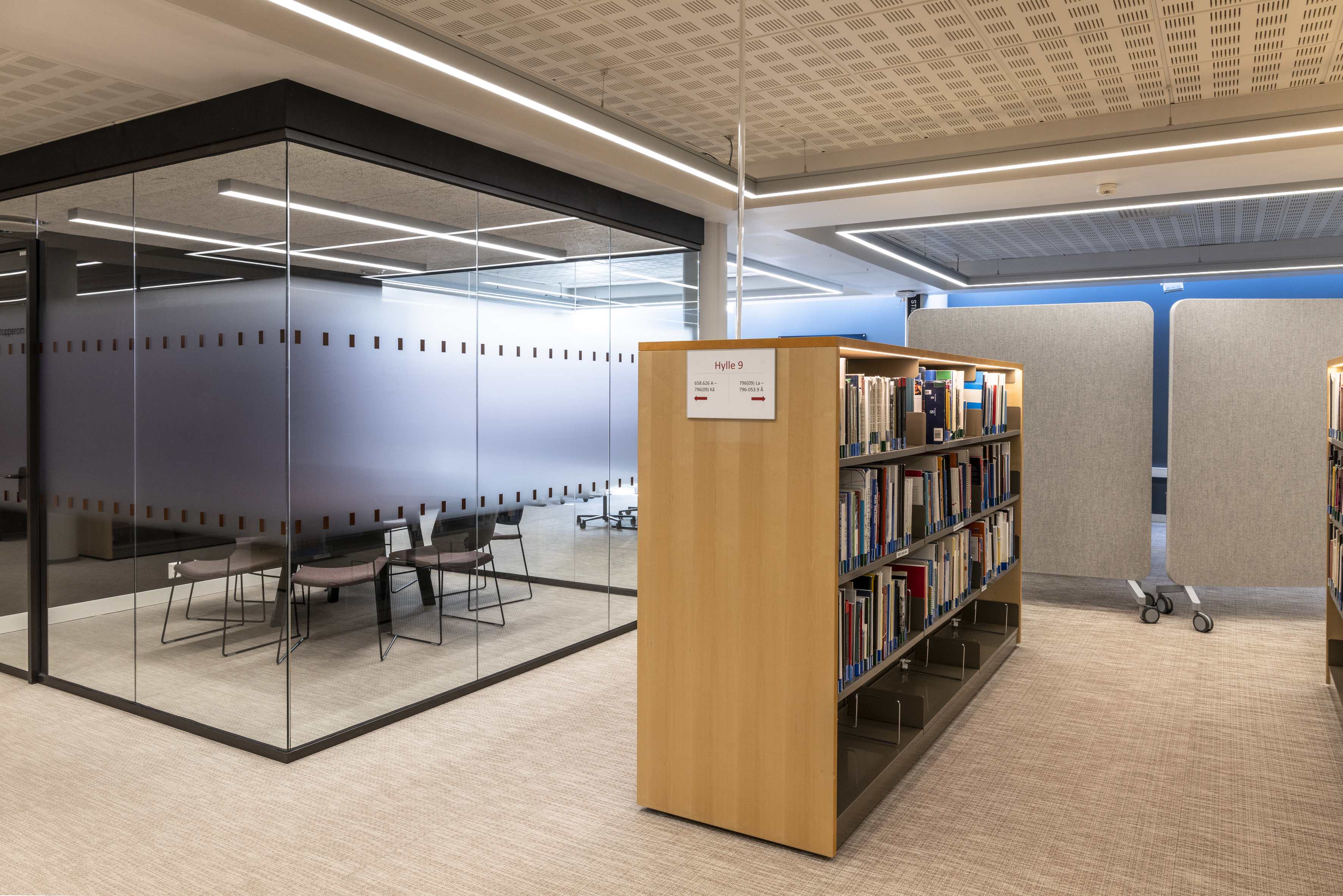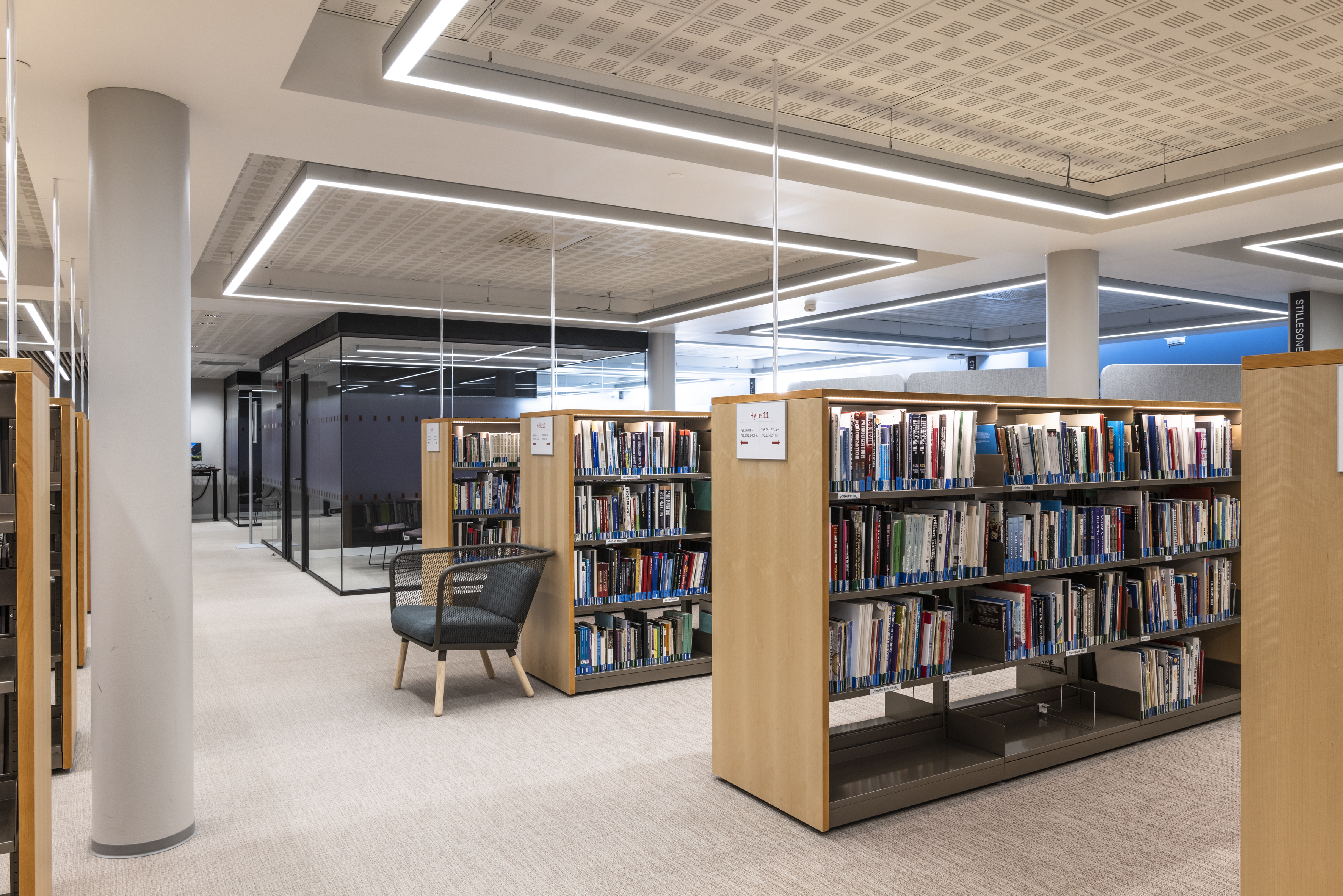 BS Eurobib i Norge leverede i 2019 stålreoler i 60/30 og havde i 2021 fornøjelsen af at supplere biblioteket med flere reoler af samme type. Derudover består biblioteket af Ordrup magasin displayreoler i samme grå farve som stålreolerne.