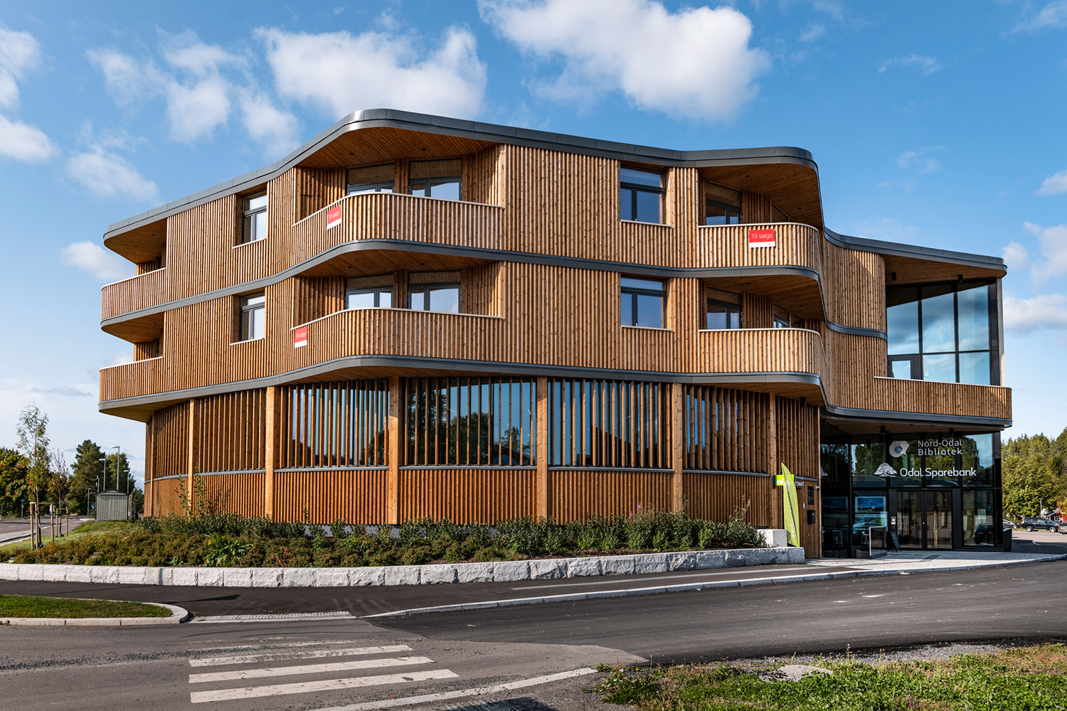 Anvendelsen af træ som hovedmateriale afspejler både kommunens rige, lokale tømrerhistorie og øget fokus på at anvende flere bæredygtige materialer.