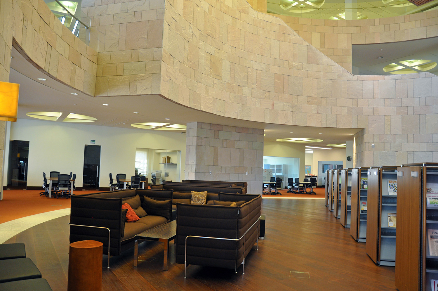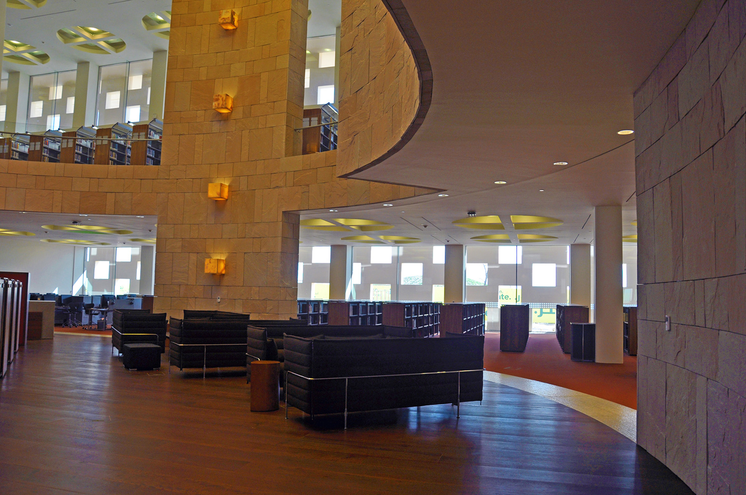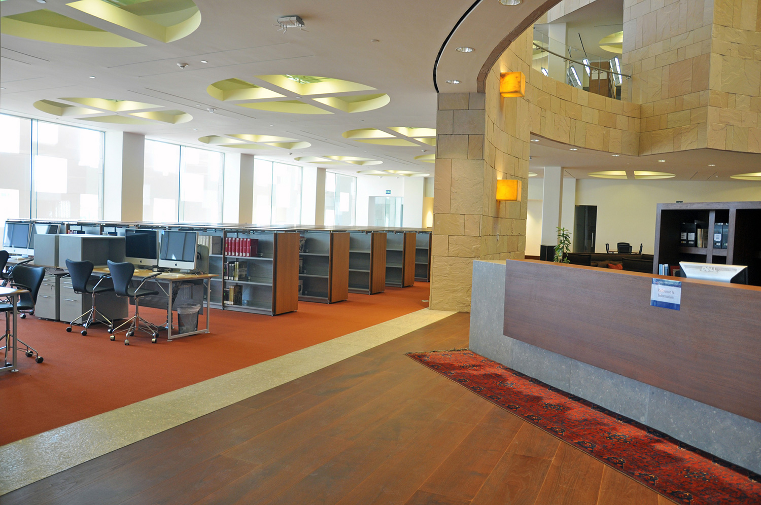 Bygningen har en størrelse på 33.000 m2 og indeholder en tre etagers gårdhave, et auditorium, klasseværelser, forelæsningssale, kontorer og et nyt bibliotek. Med en nuværende samling af 60.000 bøger, 4500 dvd’er og adgang til adskillige databaser, er biblioteket et af de mest omfattende biblioteker i regionen.