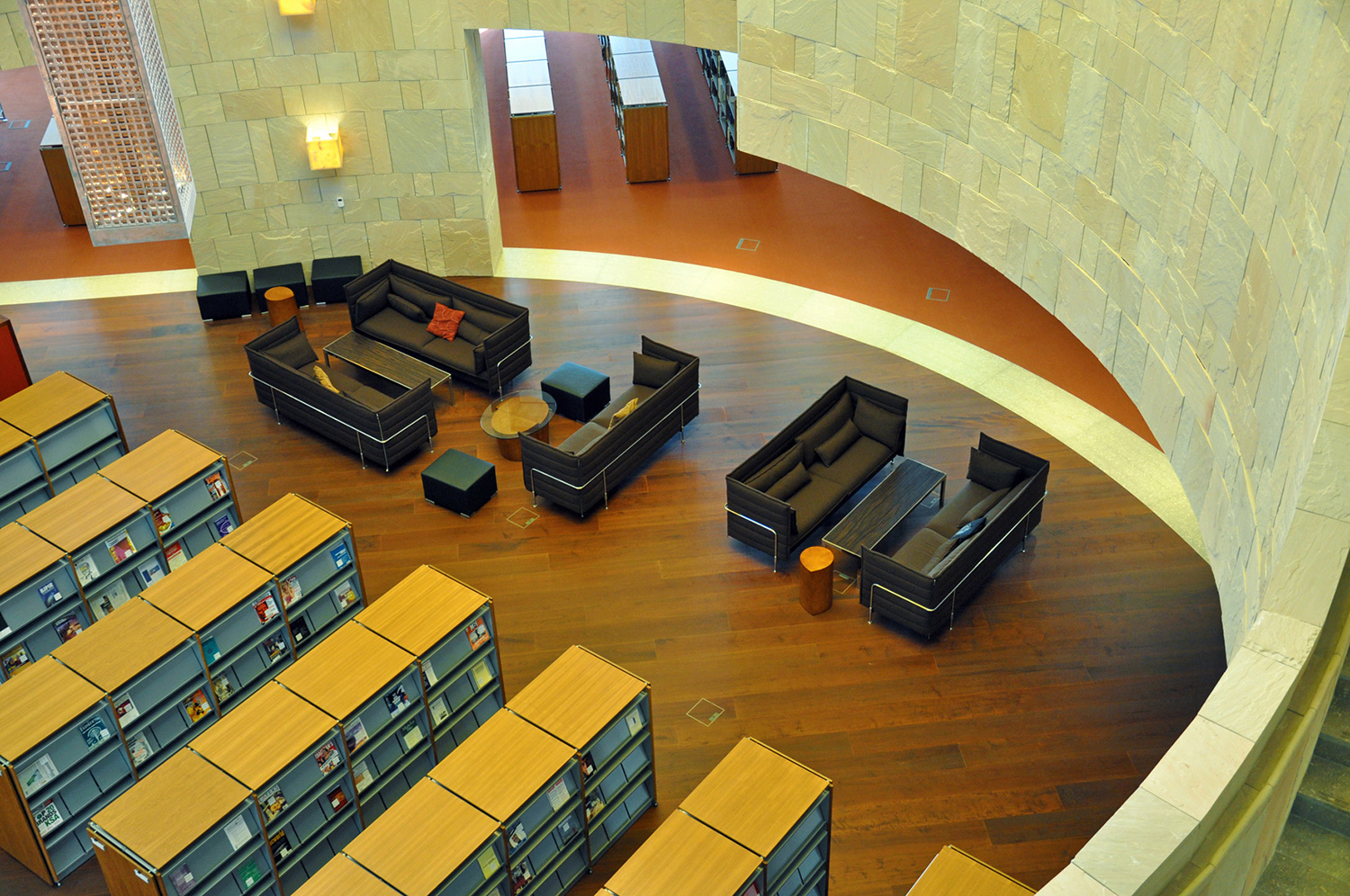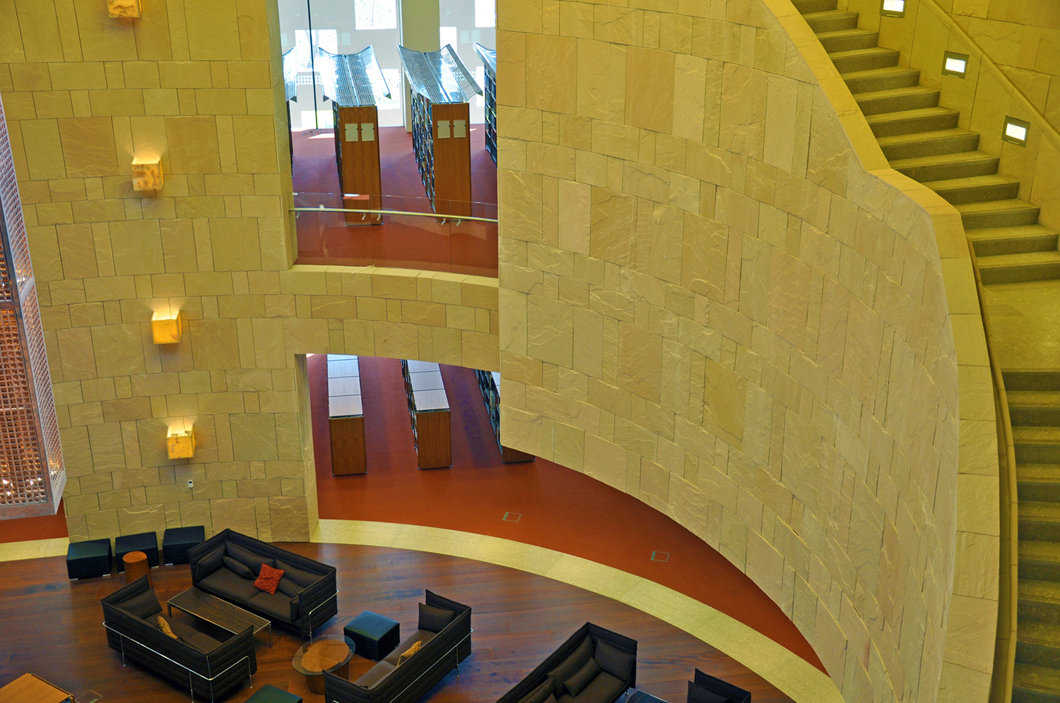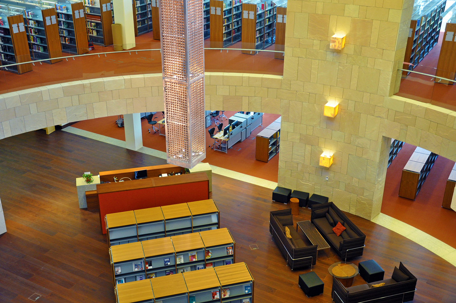 Bygningen har en størrelse på 33.000 m2 og indeholder en tre etagers gårdhave, et auditorium, klasseværelser, forelæsningssale, kontorer og et nyt bibliotek. Med en nuværende samling af 60.000 bøger, 4500 dvd’er og adgang til adskillige databaser, er biblioteket et af de mest omfattende biblioteker i regionen.