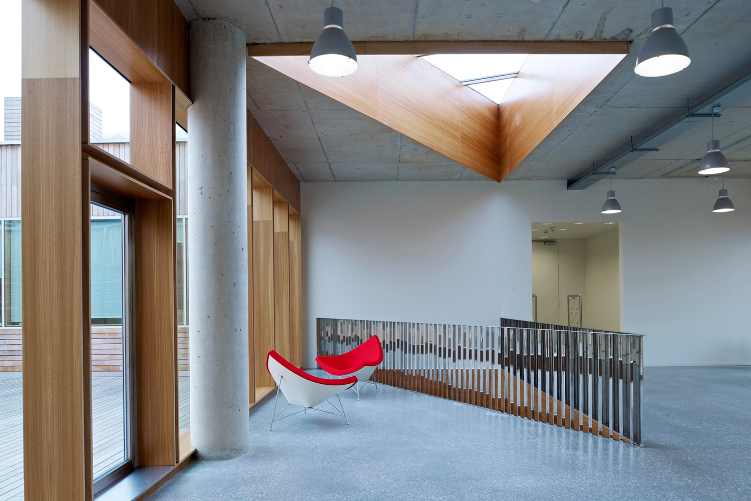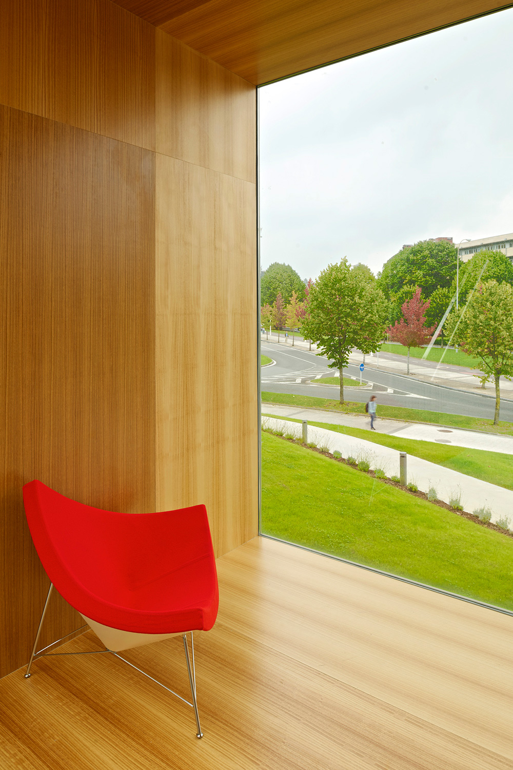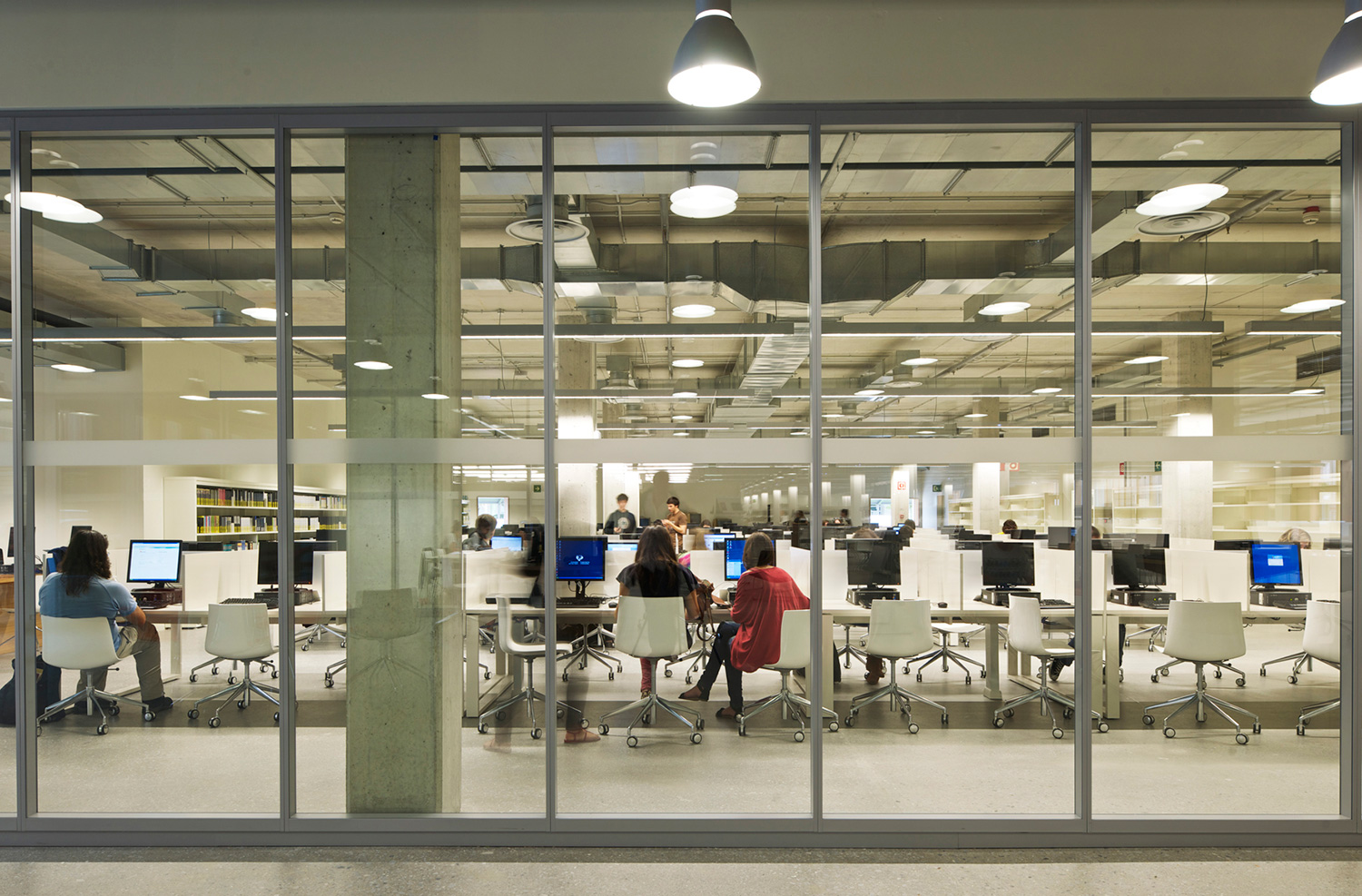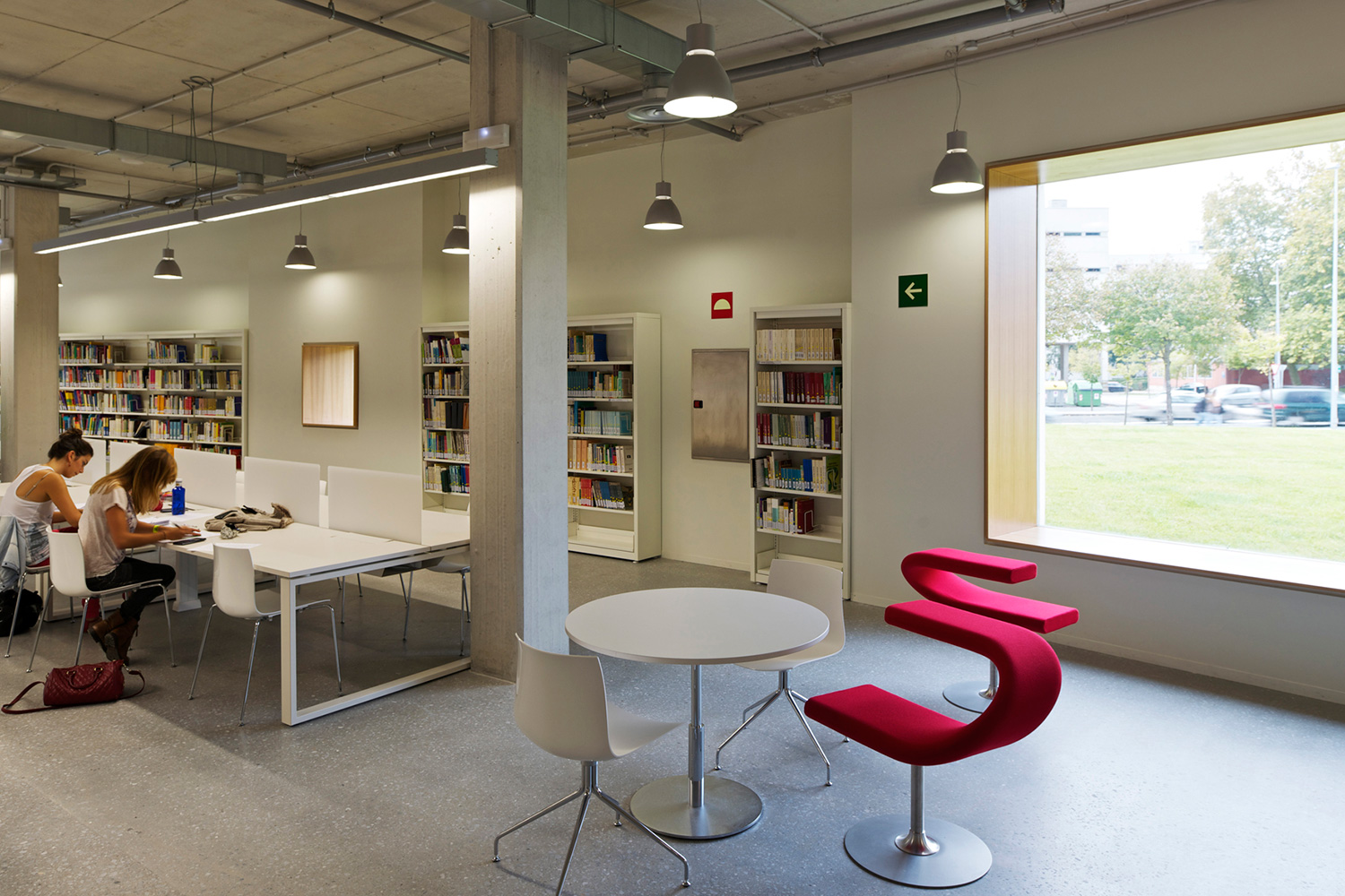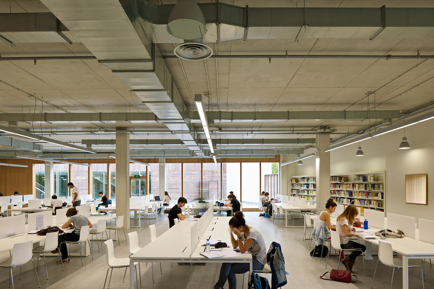 En gård separerer den to etagers høje bygning i to asymmetriske dele. Den store del rummer bibliotekets bogsamling. Den anden, mindre del, tilbyder læsesale og en forelæsningssal. BCI leverede 17.000 meter af 60/30 reolsystemet med 40 mm endepaneler og tophylder. Specialdesignede hvide bogrulleborde fuldender indretningskonceptet.
