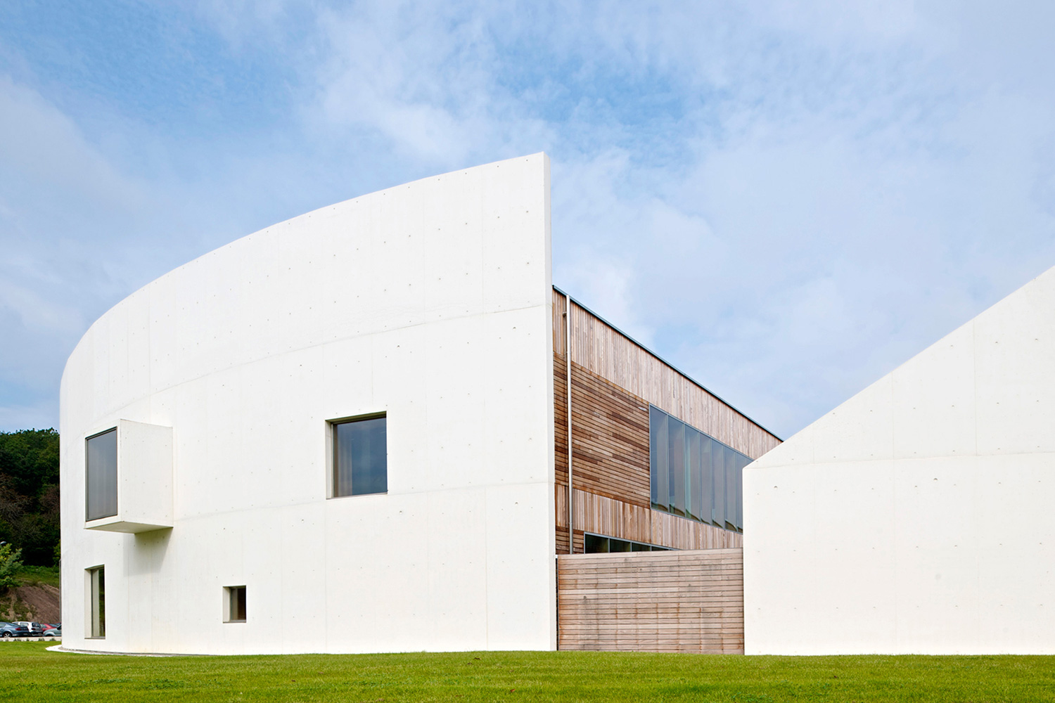 Det buede center med dens betonfacade huser primært det nye campus bibliotek, men de 16.600 m2 rummer også sproglaboratorier og andre læringsressourcer. Arkitekten beskriver designet som ”udtænkt som en enorm container, formet fra et spontant omrids, som følger de naturlige buer. Linjen er muren som indeholder to blokke arrangeret i nord og syd retning og dens toppunkt er det vi anser for være mest vigtigt: bygningens hovedindgang, som åbner op som en stor mund og peger toppunktet mod himlen”.