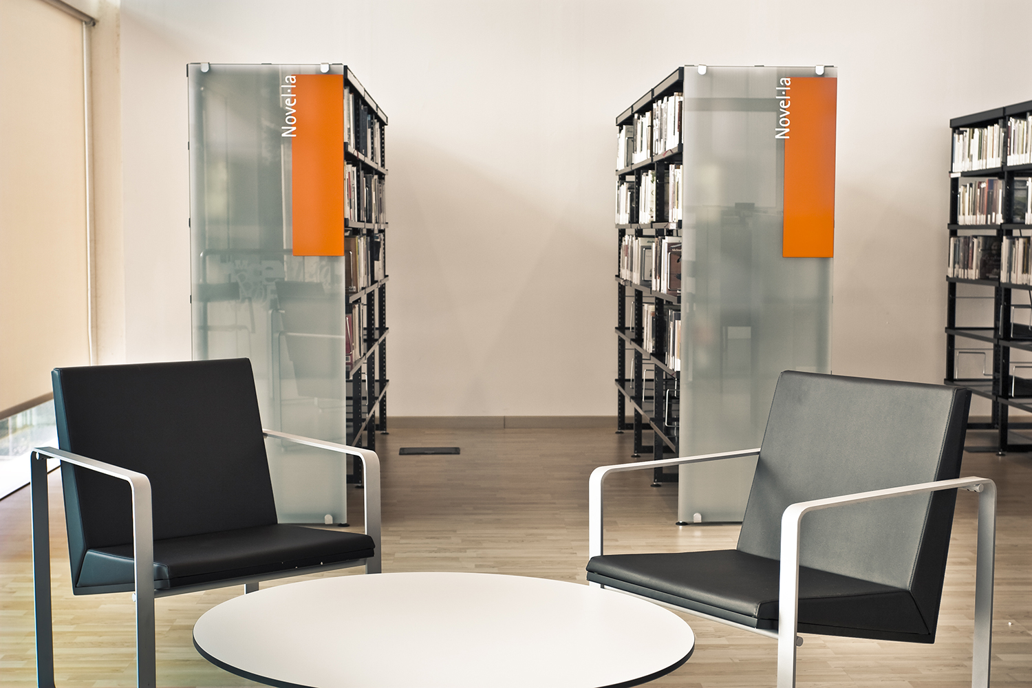 Màrius Cuintana, an architect from Barcelona and the curator of the Mies Van Der Rohe Pavilion since 1999, designed the building for the library. It is signified by lightness, transparency, spaciousness and functionality. The Opal Shelving System makes a perfect fit to the architecture.