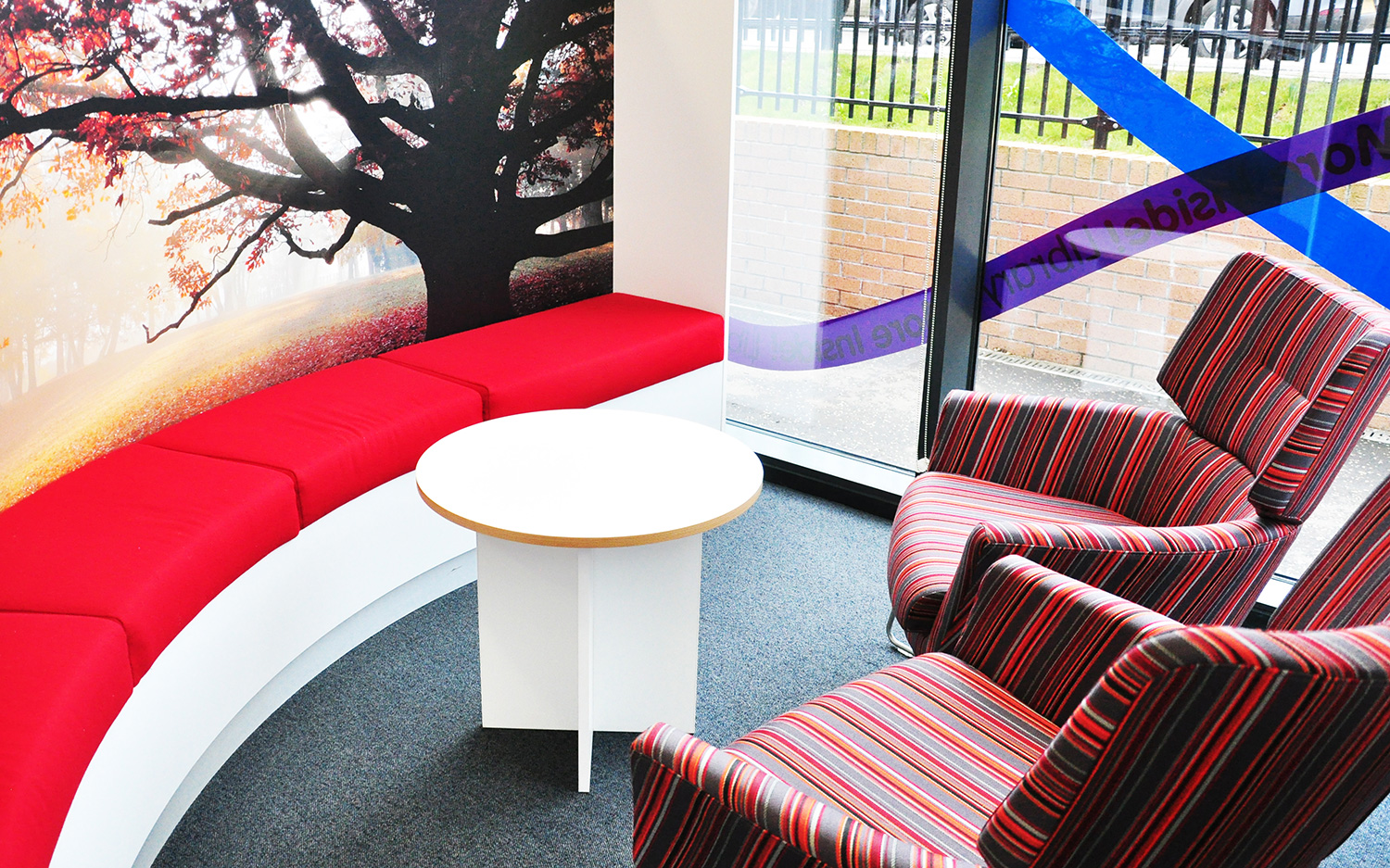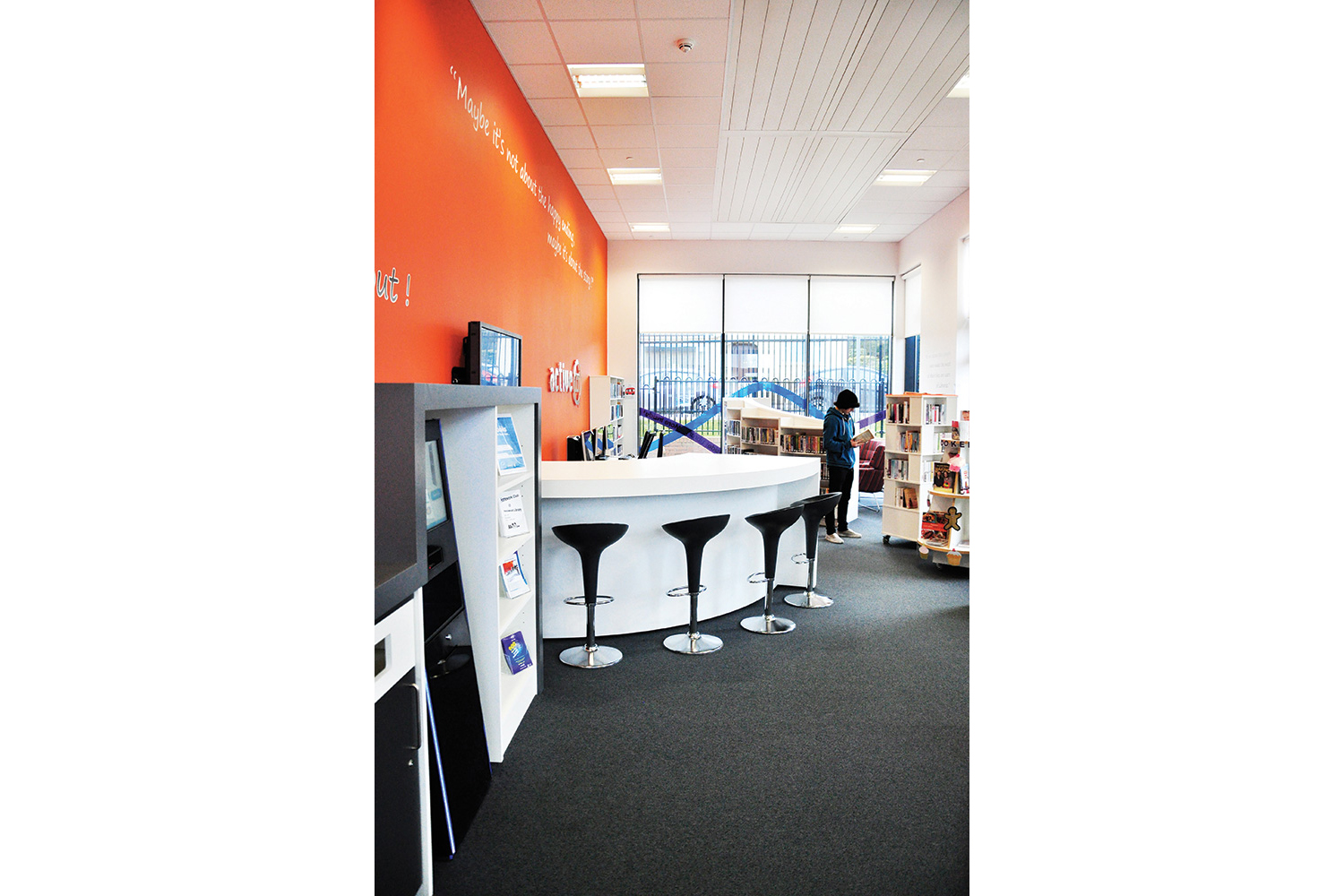 Hovedmålet var at skabe et sted som bidrager til digital læsning og læring, med en begrænset bogsamling men stærk e-læser fokus. Derfor koncentrerer vores design om at levere måder at omfavne ny teknologi, integreret PC arbejdsstationer og vores stolthed og glæder, ’The Gadget Bar’ et bord udformet til at blive brugt af biblioteksbrugere eller som del af undervisning.
