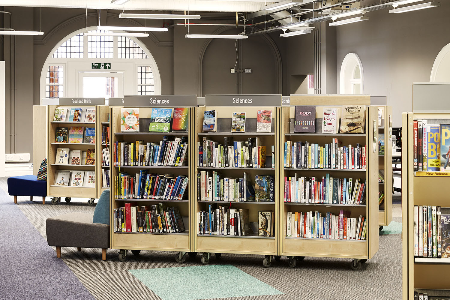 Ud over et nyt, imponerende design, er det nye voksenområde yderligere et bevis på vores engagement for bæredygtighed, da alle reoler fra det gamle bibliotek er blevet genbrugt eller opgraderet i det nye område for at undgå behovet for nye.