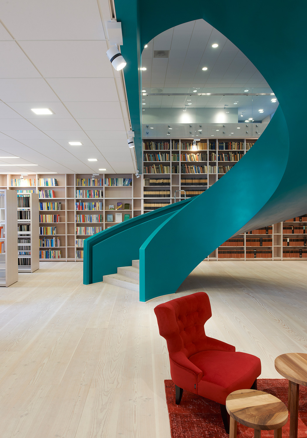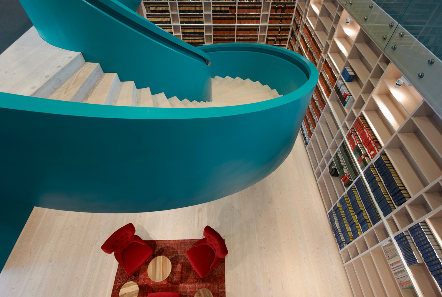 Autenticitet har været et nøgleord. Men de har også gjort plads til mere kantede detaljer som den bølgende trappe i udtryksfuld turkis.