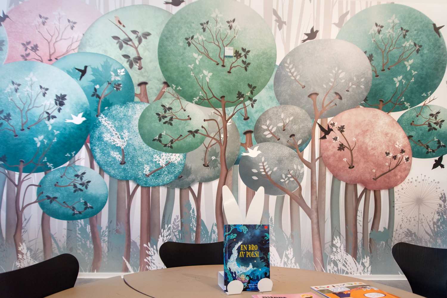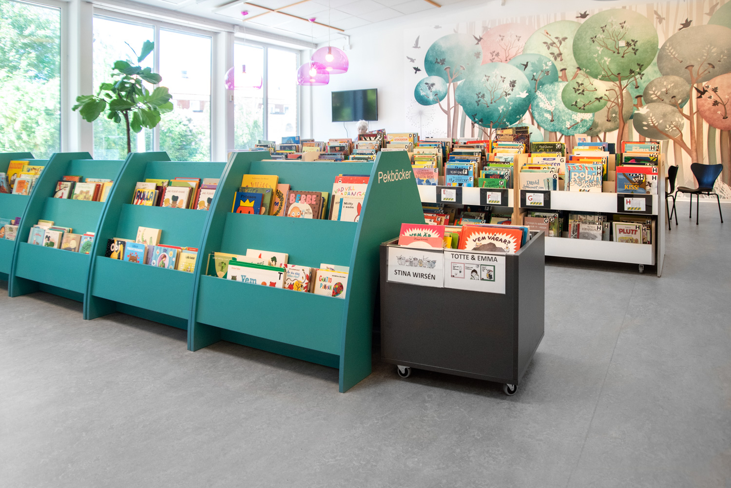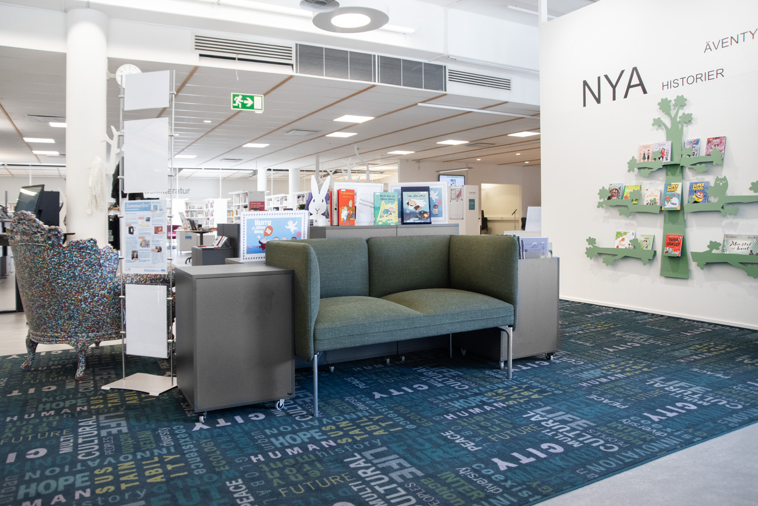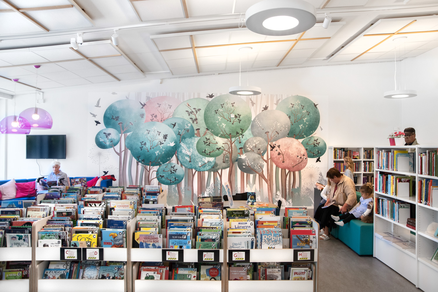 Alle aldersgrupper føler sig nu velkomne i børneafdelingen, mens de voksne kan nyde lyset der falder ind gennem ovenlyset og den fine lokale glaskunst.