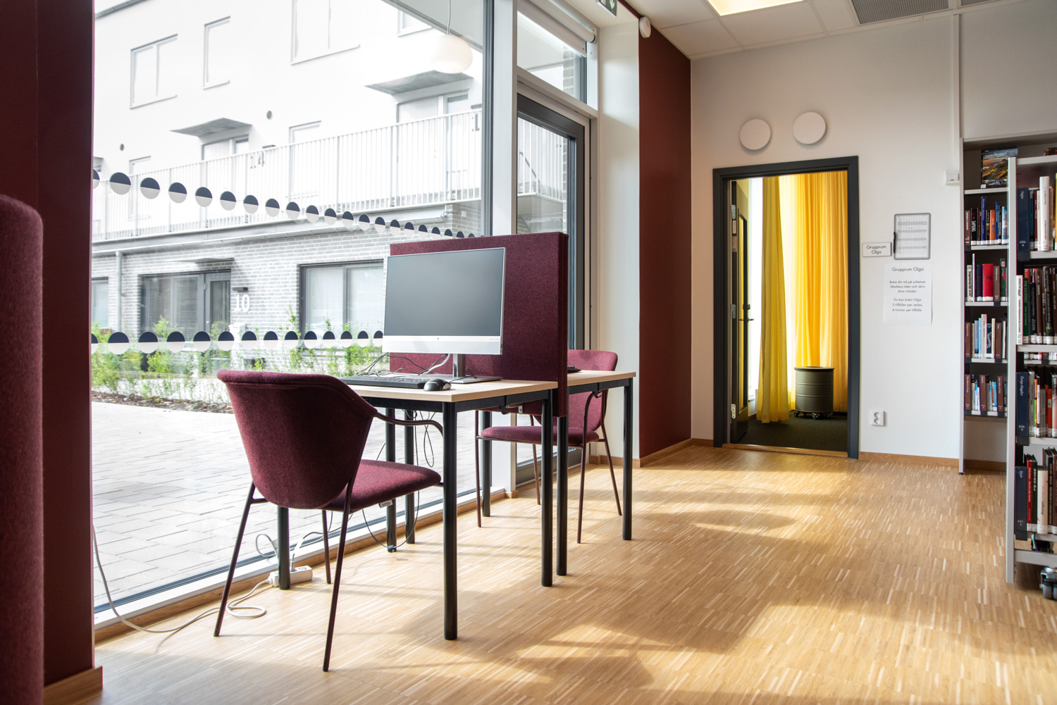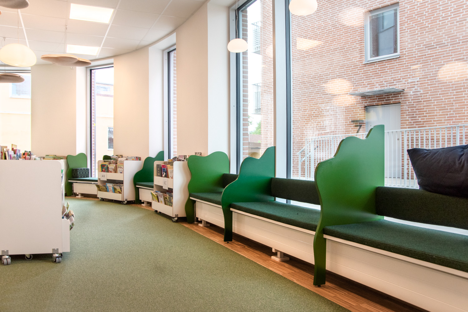 Resultatet er et mix af cafe-stemning, kreative kontormiljøer og referencer til den lokale industri og natur, der præger området. Den rå og legende farvepalette giver det nye bibliotek en helt særlig og uformel stemning, hvor alle føler sig velkomne.