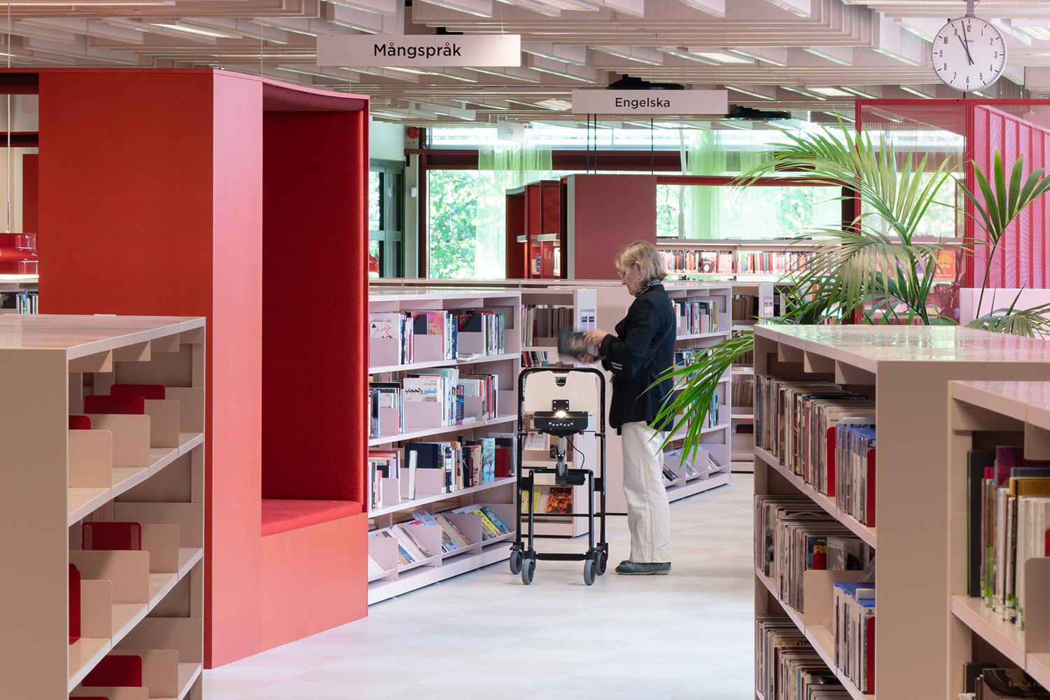 Biblioteket i Västra Frölunda udgør en væsentlig del af Frölunda Kulturhus. De fleksible og modulære reoler kan tilpasse sig forskellige medietyper som bøger, tidsskrifter og multimedia. Biblioteket er designet til at være en inkluderende læringszone, hvor besøgende kan udforske og lære i forskellige miljøer, herunder stille studierum, gruppestudier og børnevenlige områder.