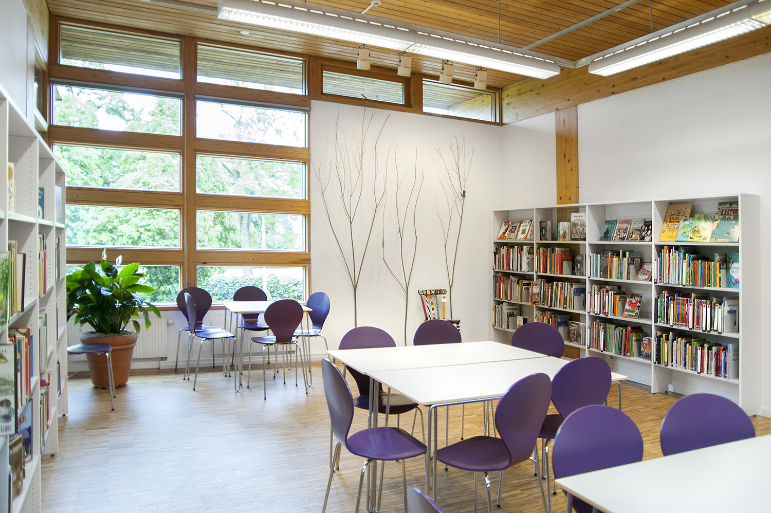 Det har været vigtigt at fokusere på miljøet igennem hele processen; lige fra genbrug og ombetrækning af gamle stole, der bruges i caféen, til et miljøcertificeret trægulv, der er lagt i hele biblioteket.