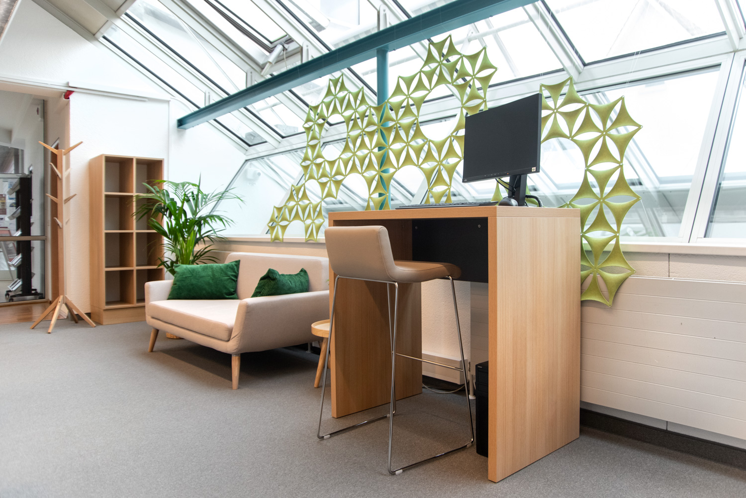 ...ønskværdigt – men også en smule udfordrende. Sammen med biblioteksteamet har vi arbejdet på at skabe løsninger præcis til dette formål. Der er steder til fællesskab og ro samt koncentreret arbejde, læring og afslapning.
