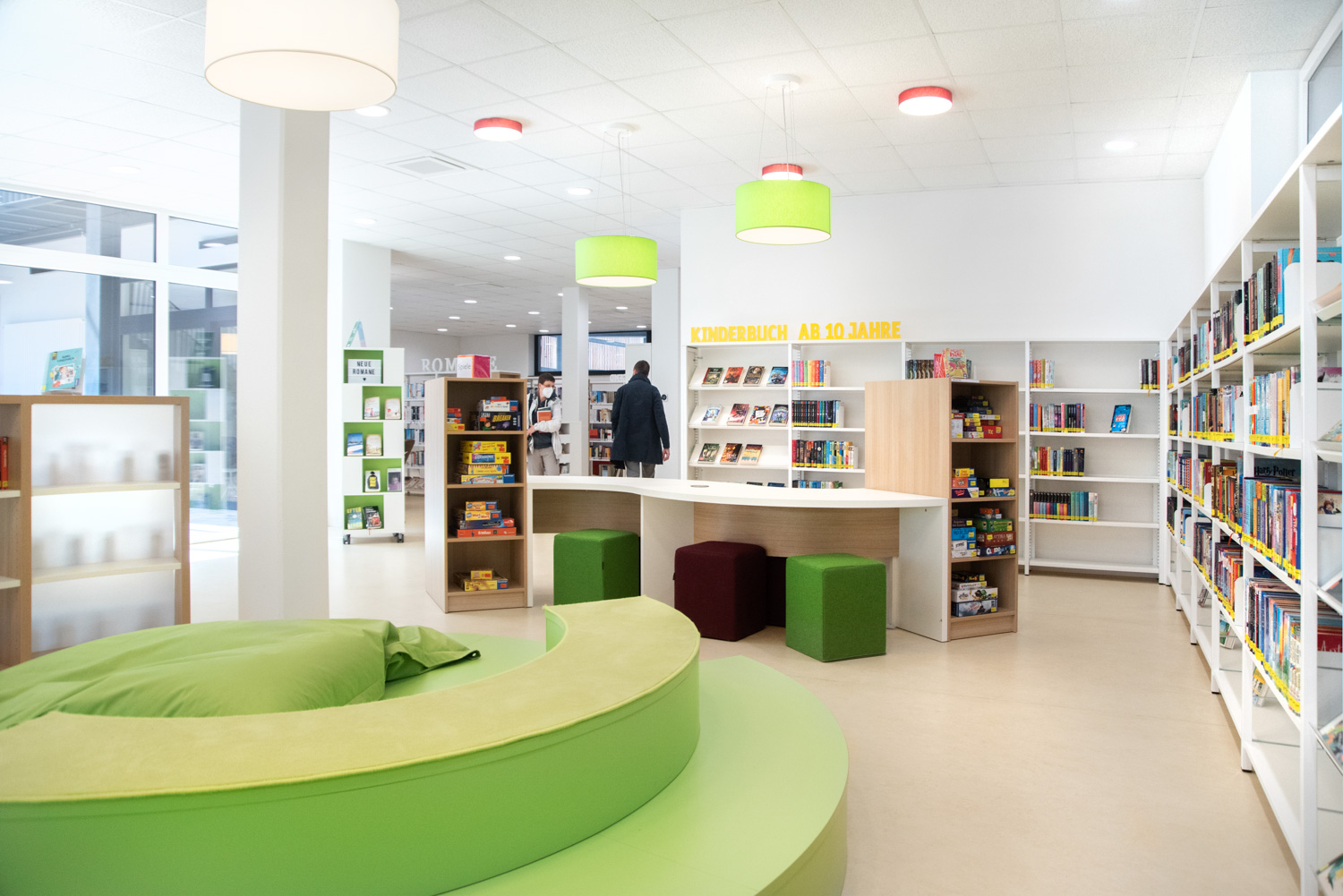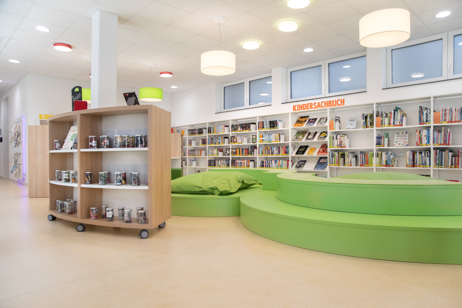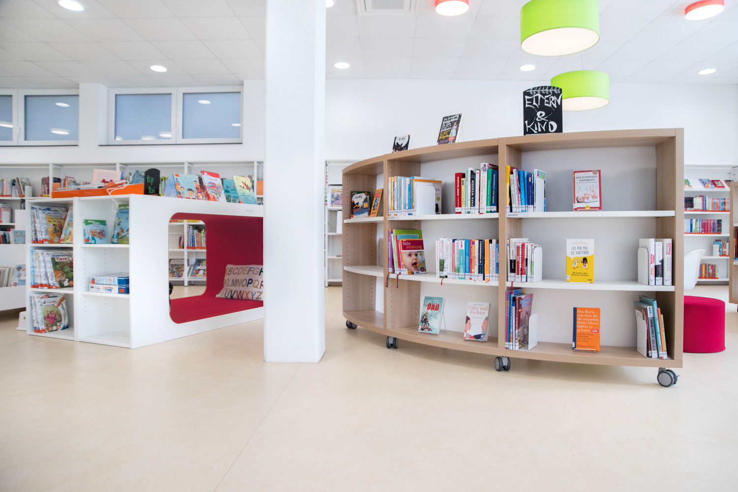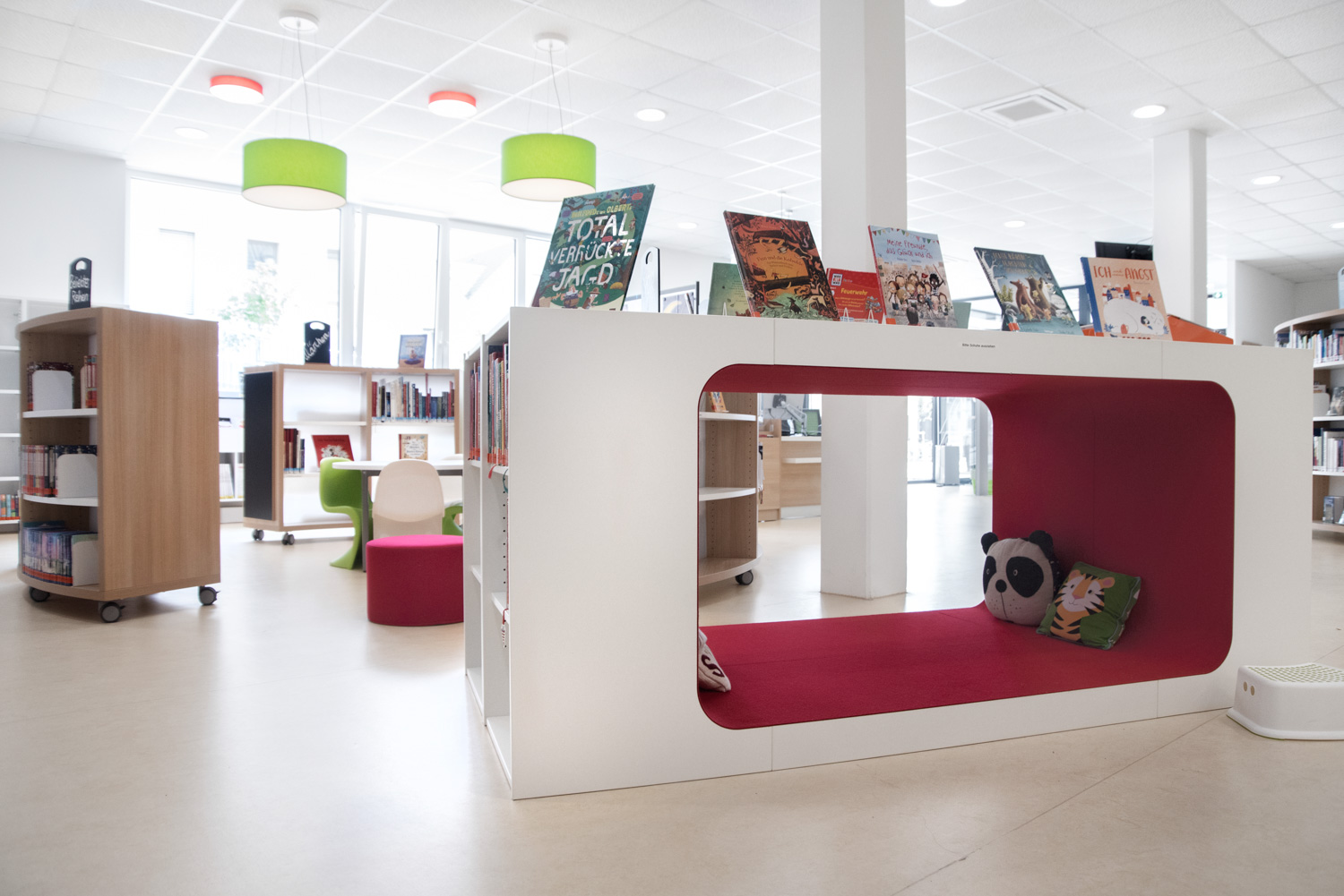 Arkitekter fra Schulz Speyer Bibliothekstechnik havde et mål om at skabe et biblioteksrum, der ville være attraktivt for besøgende i alle aldre. Samtidig skulle indretningen passe til bygningen og være indbydende.