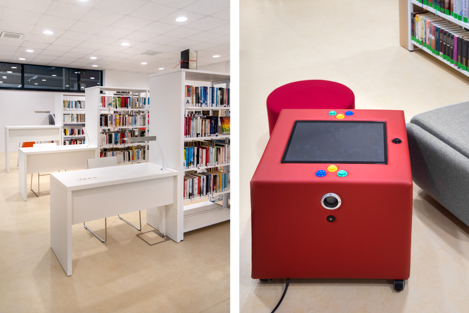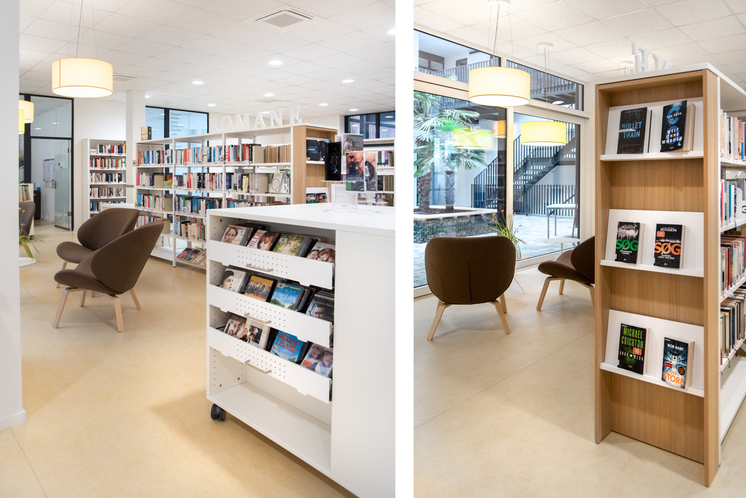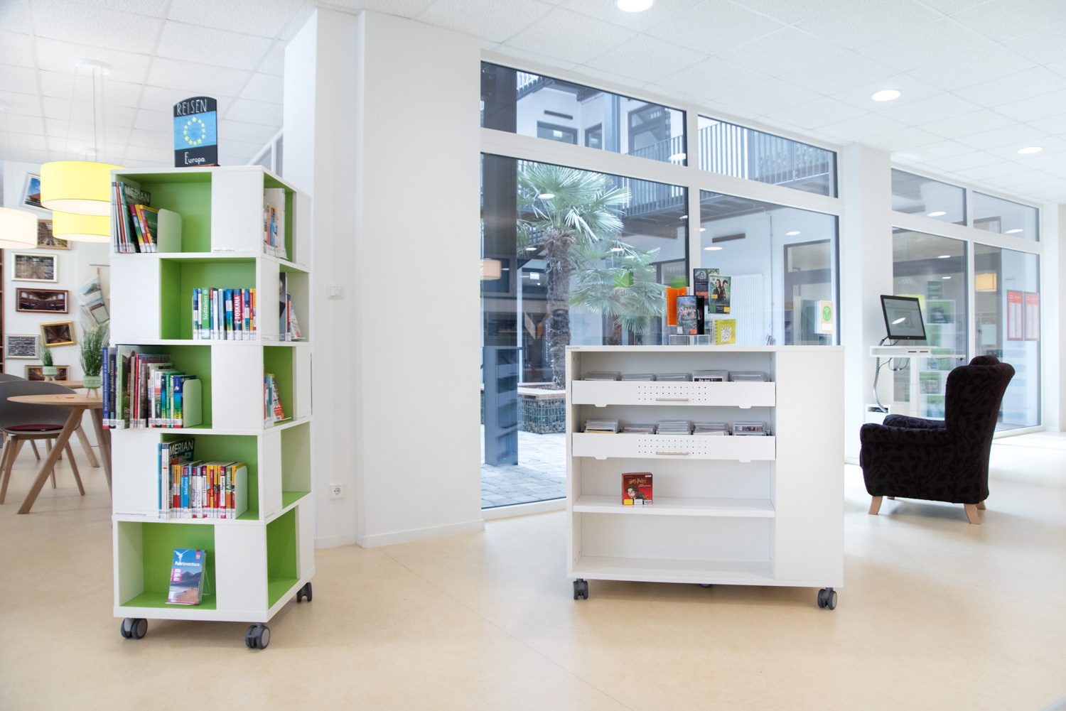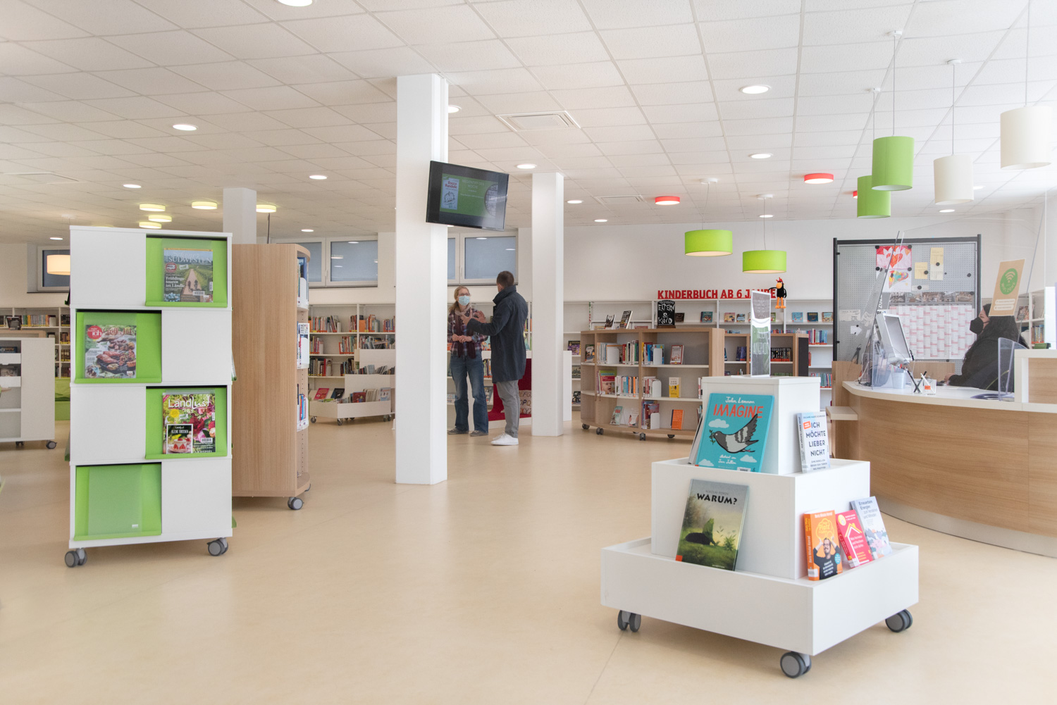 Arkitekter fra Schulz Speyer Bibliothekstechnik havde et mål om at skabe et biblioteksrum, der ville være attraktivt for besøgende i alle aldre. Samtidig skulle indretningen passe til bygningen og være indbydende.