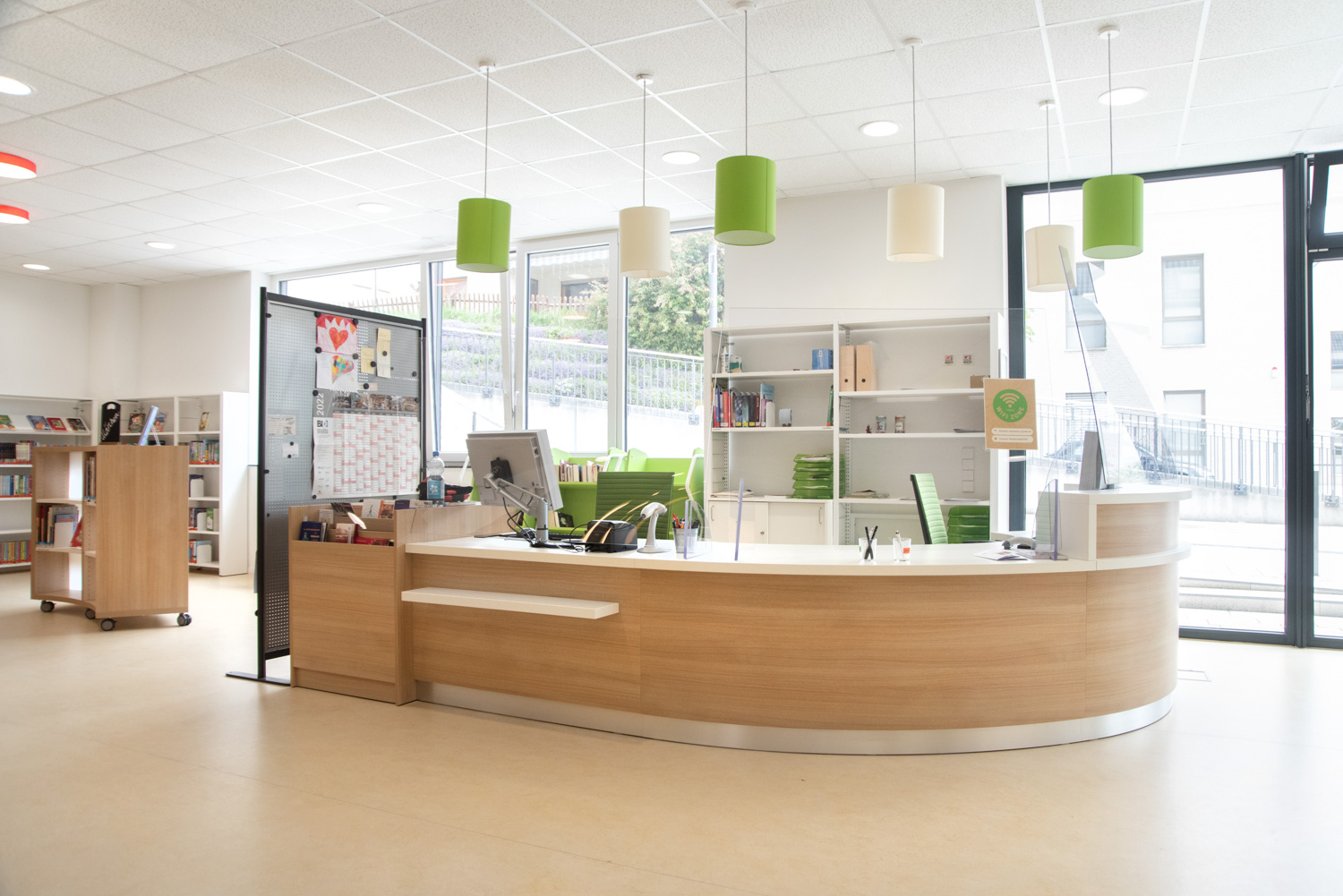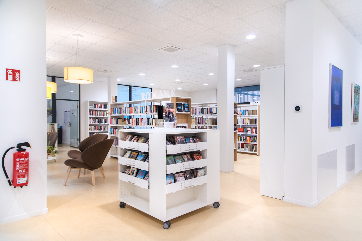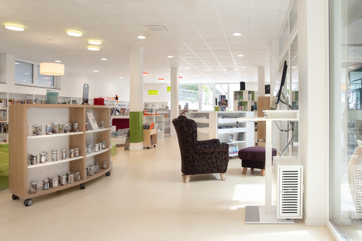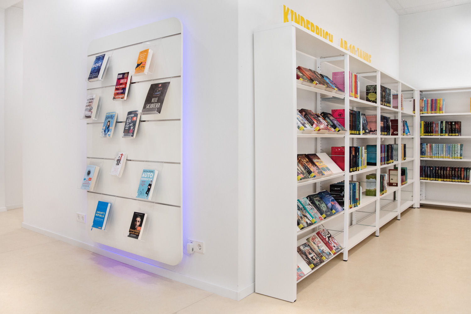 I samarbejde med Ilsfeld Bibliotek kom vores arkitektteam med kreative ideér til farver og former, som er endt ud i dette flotte resultat på dette kvalitetsbevidste og indbydende bibliotek.