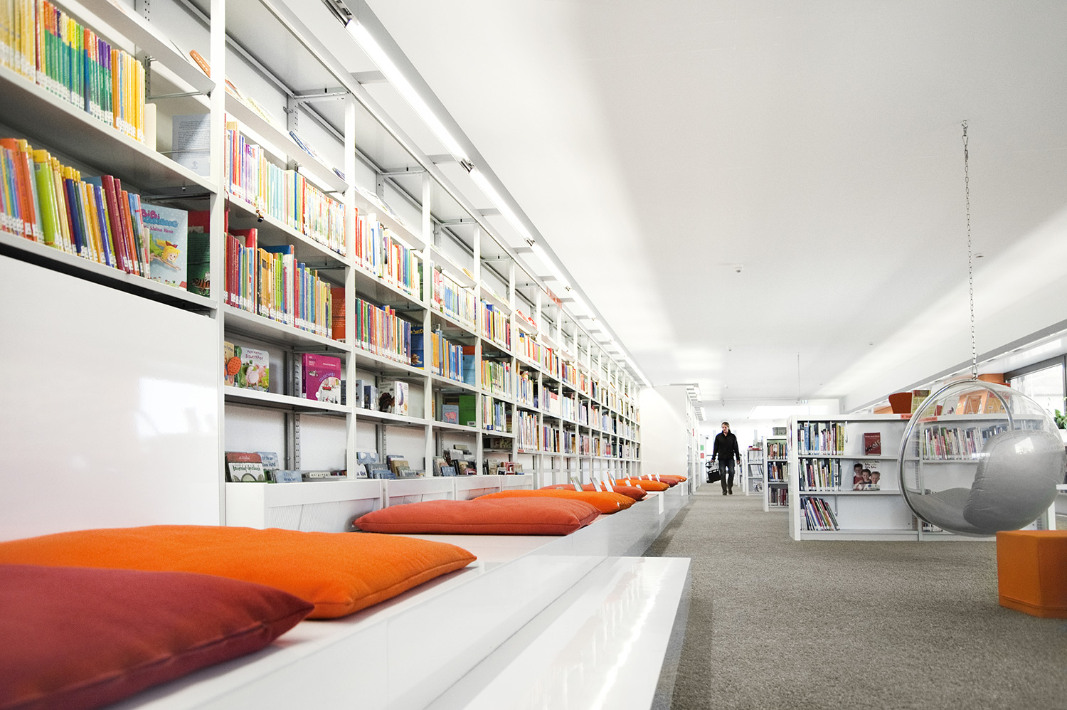 En tredjedel af bibliotekets brugere er børn. Naboskoler er regelmæssige gæster, og det mangfoldige mediekoncept er meget værdsat.