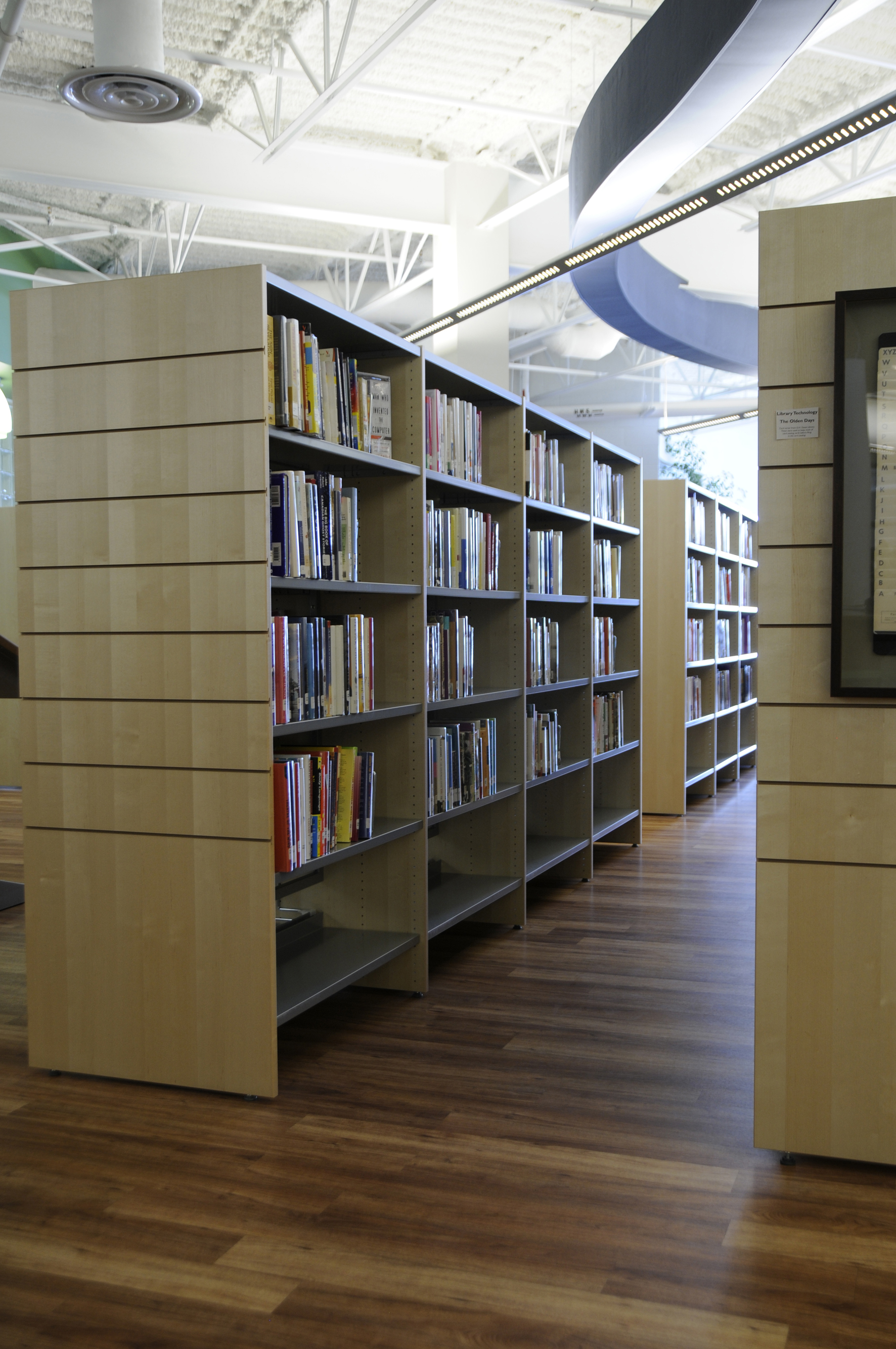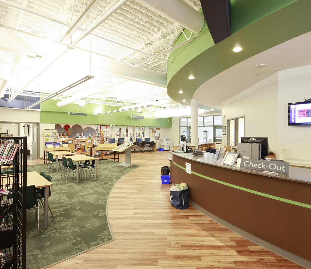 Det nye bibliotek er udstyret med den nyeste teknologi, som f.eks. selvbetjeningsstationer, OPAC stationer og RFID tags i alle samlinger, men det er også et sted hvor du kan opleve en fredfuld tilgang. Et buet væg af stof, cirkulær indvendig glasering og svævende bølgende akustiske paneler bestemmer atmosfæren af stilhed og aktivitet. Afskærmede rum til forskellige aktiviteter omringer en stor åben indretning, og de tilstødende rum er visuelt forbundet til biblioteket.