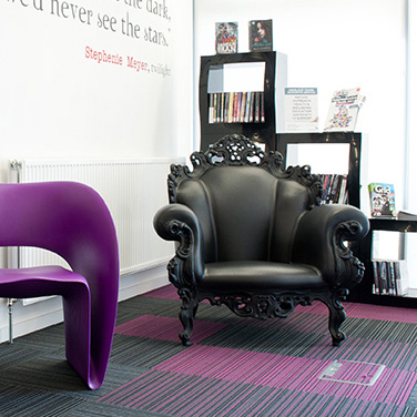 En rummelig lænestol til de voksnes litterære strejftog eller højtlæsning for de mindste. Børn vil helt sikkert samles rundt om stolen ved fortællingstid.