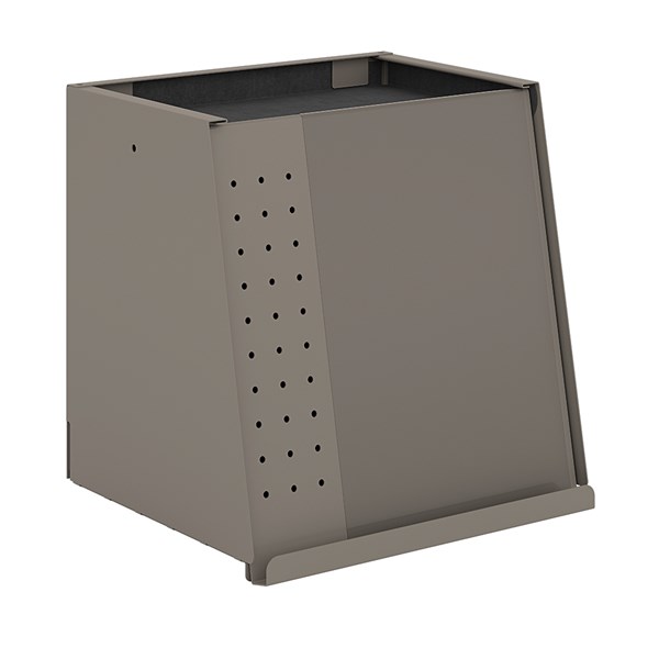 Tidsskriftsboks til hylder med en dybde på op til 250 mm. Viser tidsskrifter med forsiden mod den besøgende i en letlæselig vinkel.